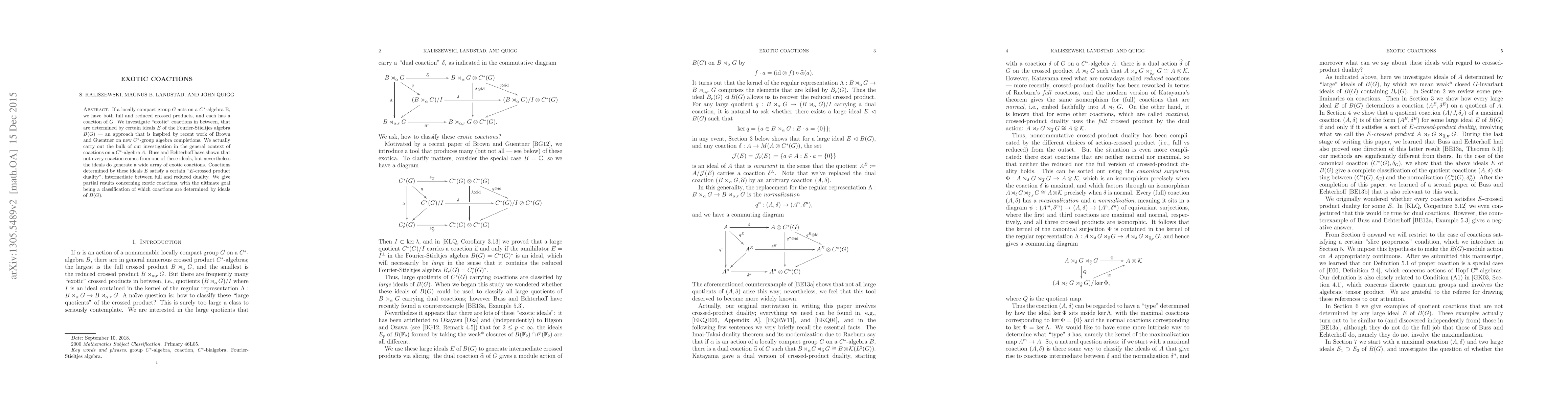 This paper explores "exotic" coactions on C*-algebras that arise from ideals in the Fourier-Stieltjes algebra of a locally compact group, providing a new perspective on crossed products and duality. The study aims to classify coactions determined by these ideals, revealing a middle ground between full and reduced coactions.