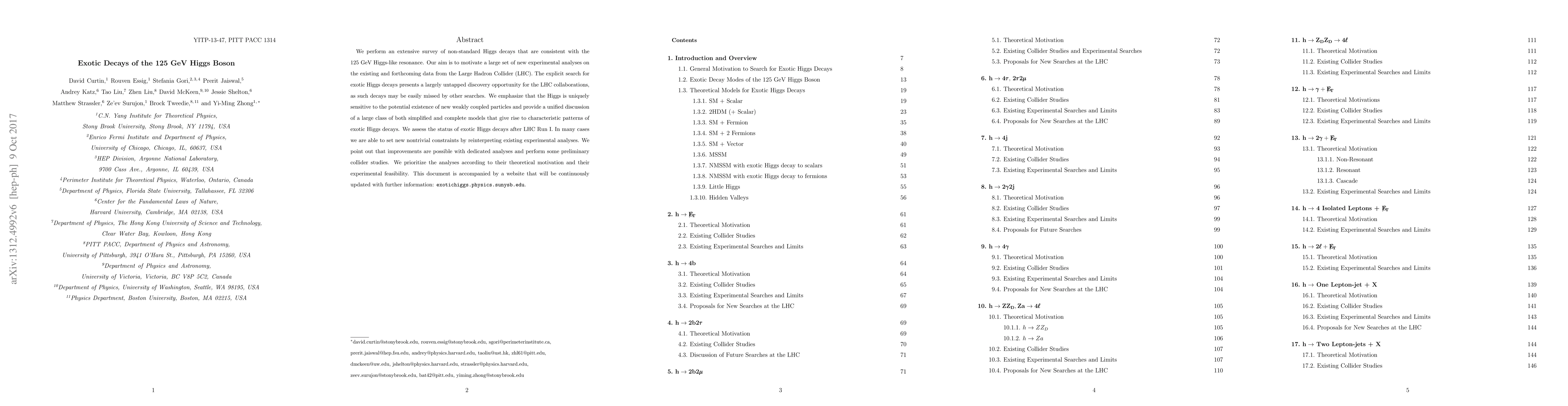 We perform an extensive survey of non-standard Higgs decays that are consistent with the 125 GeV Higgs-like resonance. Our aim is to motivate a large set of new experimental analyses on the existing and forthcoming data from the Large Hadron Collider (LHC). The explicit search for exotic Higgs decays presents a largely untapped discovery opportunity for the LHC collaborations, as such decays may be easily missed by other searches. We emphasize that the Higgs is uniquely sensitive to the potential existence of new weakly coupled particles and provide a unified discussion of a large class of both simplified and complete models that give rise to characteristic patterns of exotic Higgs decays. We assess the status of exotic Higgs decays after LHC Run 1. In many cases we are able to set new nontrivial constraints by reinterpreting existing experimental analyses. We point out that improvements are possible with dedicated analyses and perform some preliminary collider studies. We prioritize the analyses according to their theoretical motivation and their experimental feasibility. This document is accompanied by a website that will be continuously updated with further information: http://exotichiggs.physics.sunysb.edu.