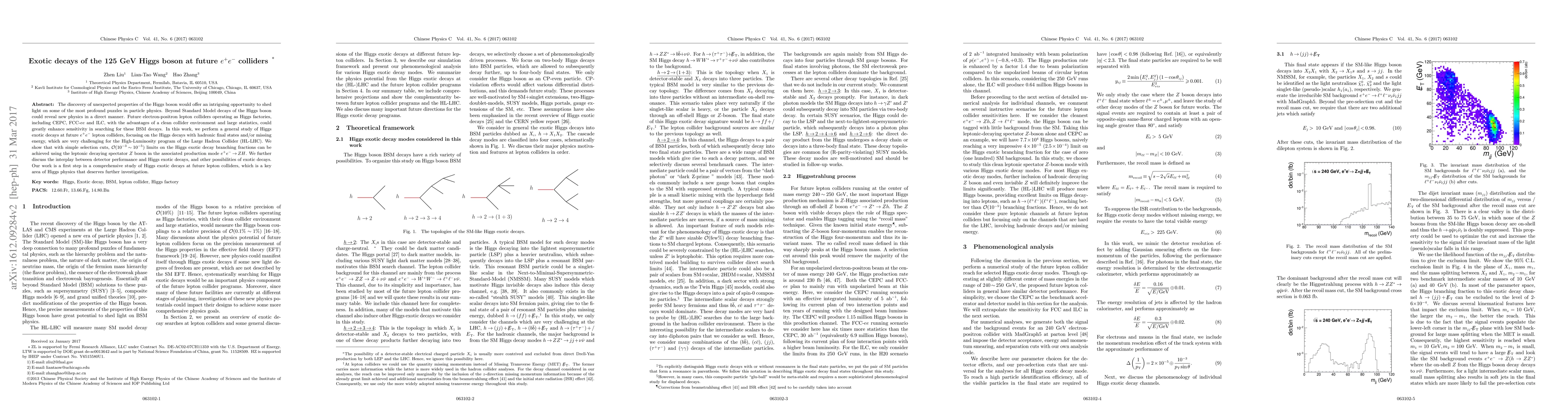 This paper explores the potential of future $e^+e^-$ lepton colliders to detect exotic decays of the 125 GeV Higgs boson, offering a cleaner environment and larger statistics than current colliders. It demonstrates that these colliders could achieve significant limits on branching fractions for Higgs exotic decays using selection cuts and the associated production mode $e^+e^-\rightarrow Z H$.