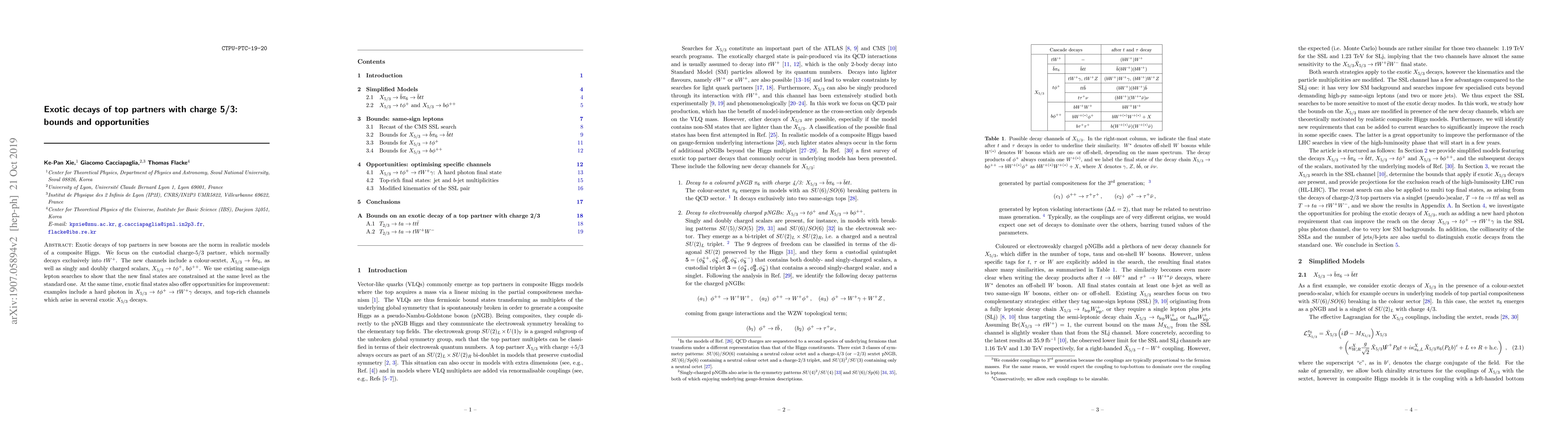 Exotic decays of top partners in new bosons are the norm in realistic models of a composite Higgs. We focus on the custodial charge-$5/3$ partner, which normally decays exclusively into $tW^+$. The new channels include a colour-sextet, $X_{5/3} \to \bar{b} \pi_6$, as well as singly and doubly charged scalars, $X_{5/3} \to t \phi^+$, $b \phi^{++}$. We use existing same-sign lepton searches to show that the new final states are constrained at the same level as the standard one. At the same time, exotic final states also offer opportunities for improvement: examples include a hard photon in $X_{5/3}\rightarrow t\phi^+\rightarrow tW^+\gamma$ decays, and top-rich channels which arise in several exotic $X_{5/3}$ decays.