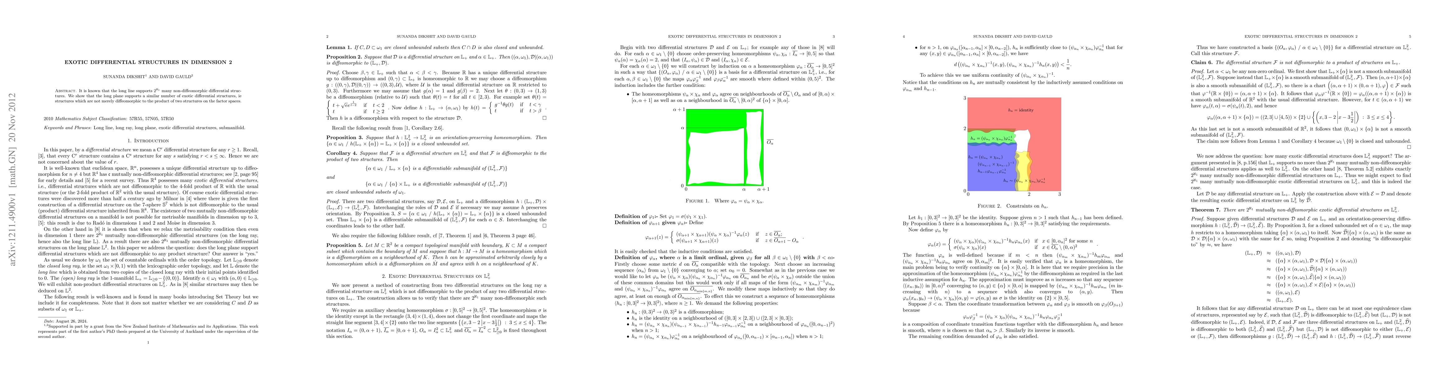 The long plane supports a large number of exotic differential structures, similar to those found on the long line, with potential implications for understanding the structure of differential geometry.
