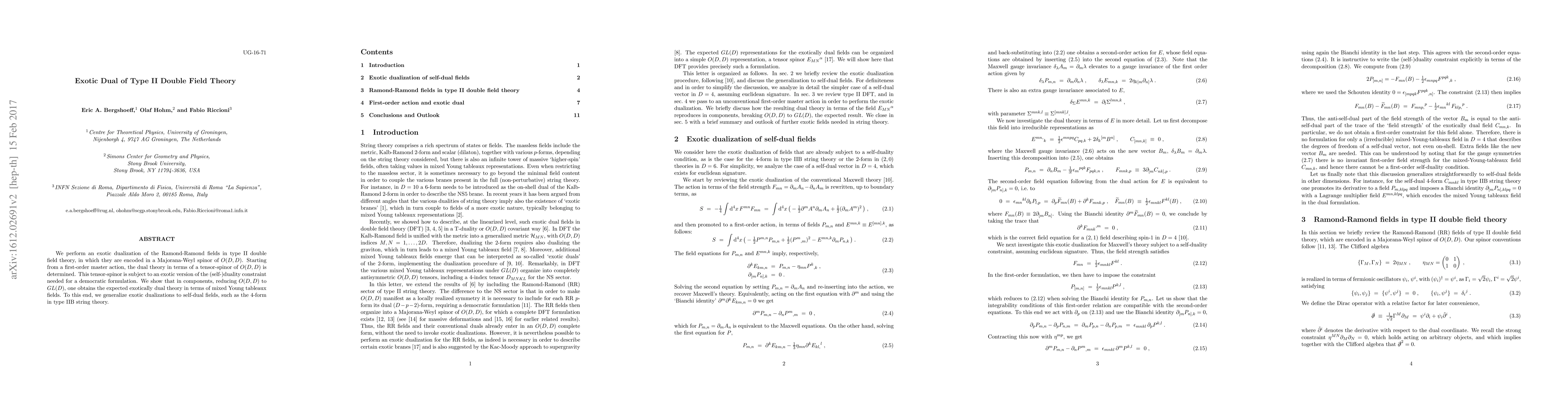 We perform an exotic dualization of the Ramond-Ramond fields in type II double field theory, in which they are encoded in a Majorana-Weyl spinor of O(D,D). Starting from a first-order master action, the dual theory in terms of a tensor-spinor of O(D,D) is determined. This tensor-spinor is subject to an exotic version of the (self-)duality constraint needed for a democratic formulation. We show that in components, reducing O(D,D) to GL(D), one obtains the expected exotically dual theory in terms of mixed Young tableaux fields. To this end, we generalize exotic dualizations to self-dual fields, such as the 4-form in type IIB string theory.