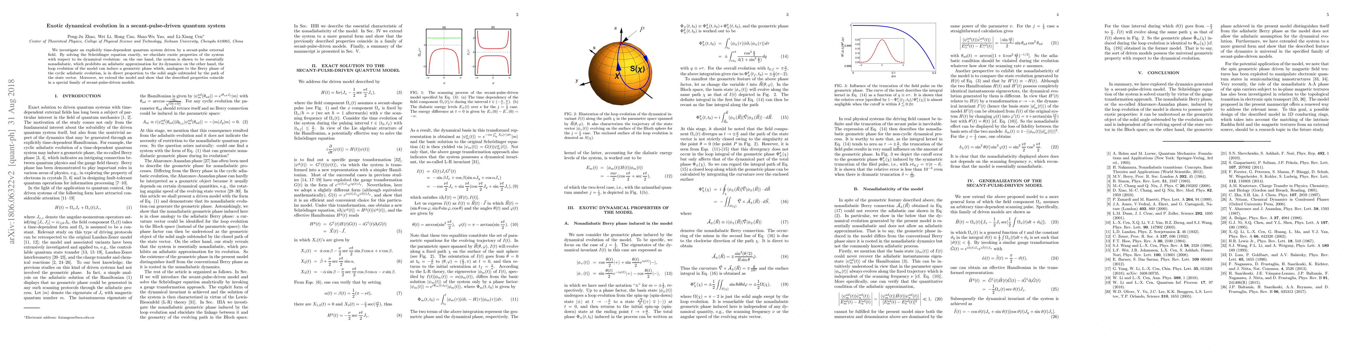 We investigate an explicitly time-dependent quantum system driven by a secant-pulse external field. By solving the Schr\"{o}dinger equation exactly, we elucidate exotic properties of the system with respect to its dynamical evolution: on the one hand, the system is shown to be essentially nonadiabatic, which prohibits an adiabatic approximation for its dynamics; on the other hand, the loop evolution of the model can induce a geometric phase which, analogous to the Berry phase of the cyclic adiabatic evolution, is in direct proportion to the solid angle subtended by the path of the state vector. Moreover, we extend the model and show that the described properties coincide in a special family of secant-pulse-driven models.