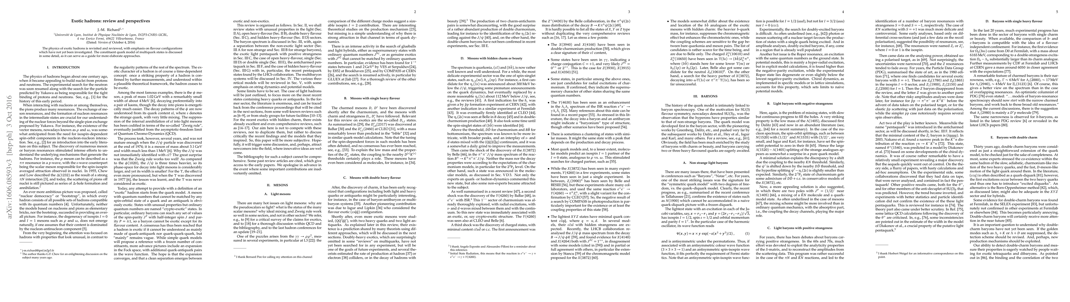 The physics of exotic hadrons is revisited and reviewed, with emphasis on flavour configurations which have not yet been investigated. The constituent quark model of multiquark states is discussed in some detail, as it can serve as a guide for more elaborate approaches.