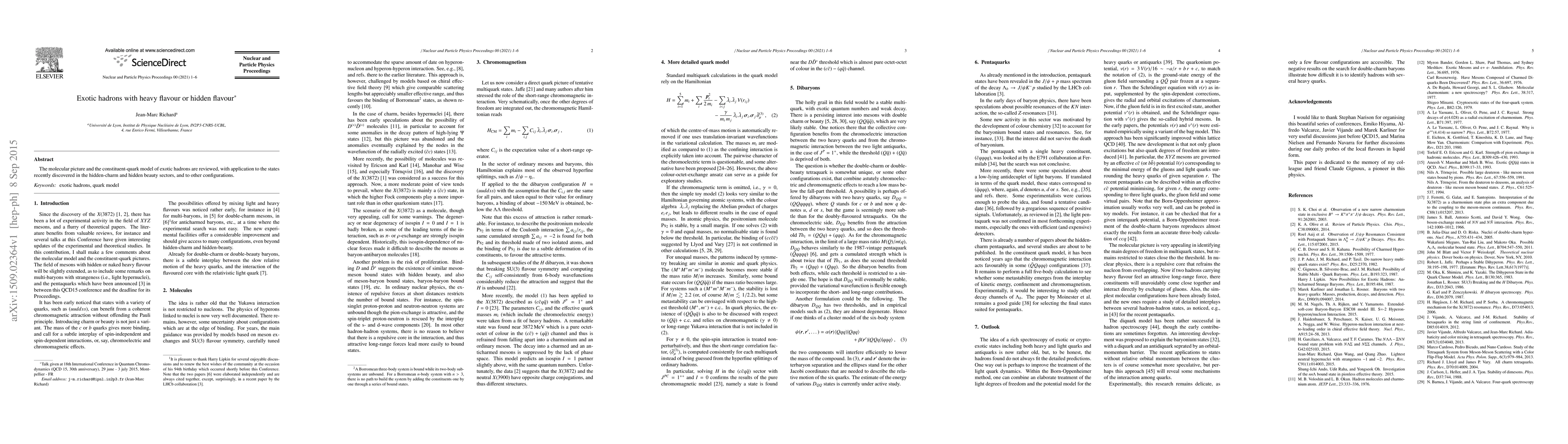 The paper presents a comprehensive review of the molecular picture and constituent-quark model of exotic hadrons, including detailed discussions on the X(3872) and potential dibaryon configurations with two heavy quarks.