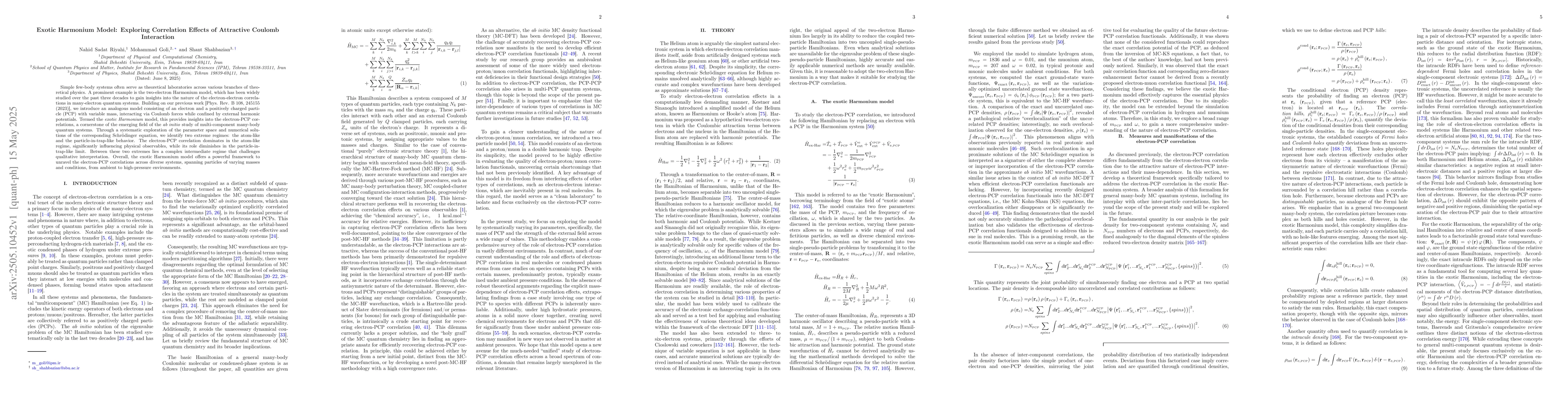 The exotic Harmonium model provides a framework to understand electron-PCP correlations across diverse systems, spanning particles of varying masses and conditions, from ambient to high-pressure environments.