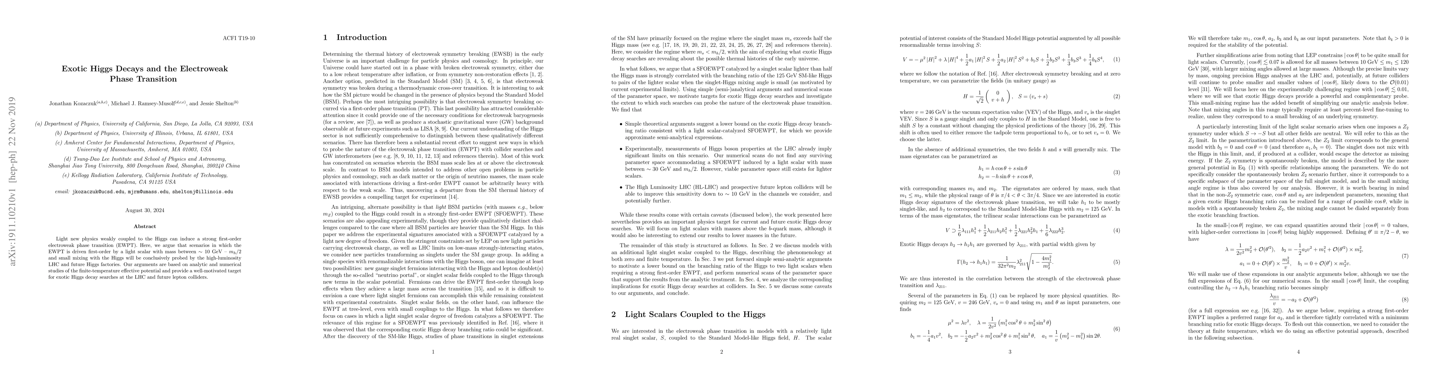 This paper explores how light new physics weakly coupled to the Higgs can induce a strong first-order electroweak phase transition, arguing that such scenarios will be probed by the high-luminosity LHC and future Higgs factories through exotic Higgs decay searches. The study uses analytic and numerical methods to analyze the finite-temperature effective potential.