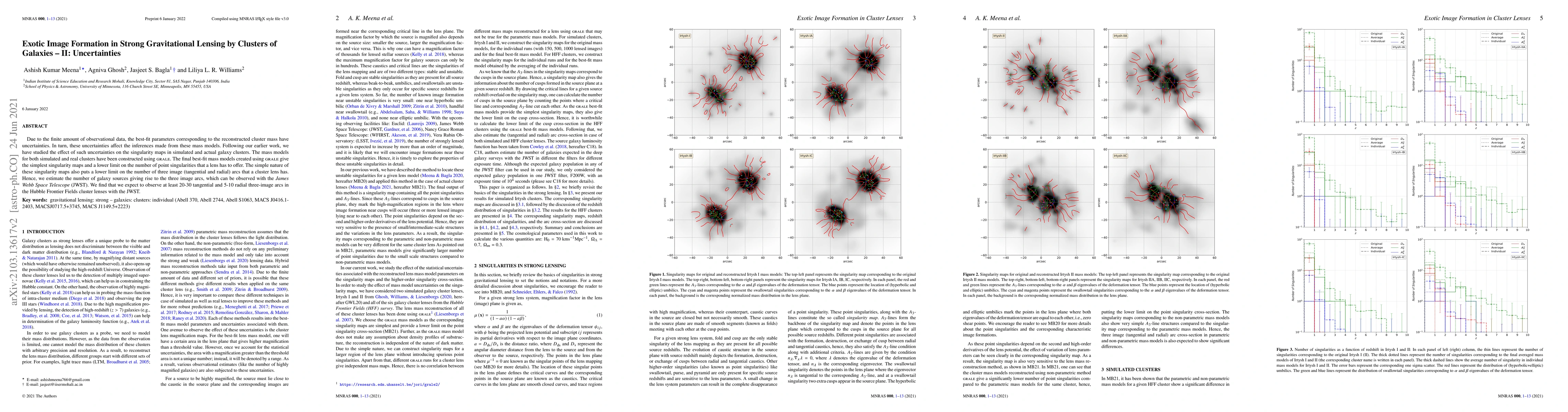 Due to the finite amount of observational data, the best-fit parameters corresponding to the reconstructed cluster mass have uncertainties. In turn, these uncertainties affect the inferences made from these mass models. Following our earlier work, we have studied the effect of such uncertainties on the singularity maps in simulated and actual galaxy clusters. The mass models for both simulated and real clusters have been constructed using grale. The final best-fit mass models created using grale give the simplest singularity maps and a lower limit on the number of point singularities that a lens has to offer. The simple nature of these singularity maps also puts a lower limit on the number of three image (tangential and radial) arcs that a cluster lens has. Hence, we estimate the number of galaxy sources giving rise to the three image arcs, which can be observed with the James Webb Space Telescope (JWST). We find that we expect to observe at least 20-30 tangential and 5-10 radial three-image arcs in the Hubble Frontier Fields cluster lenses with the JWST.