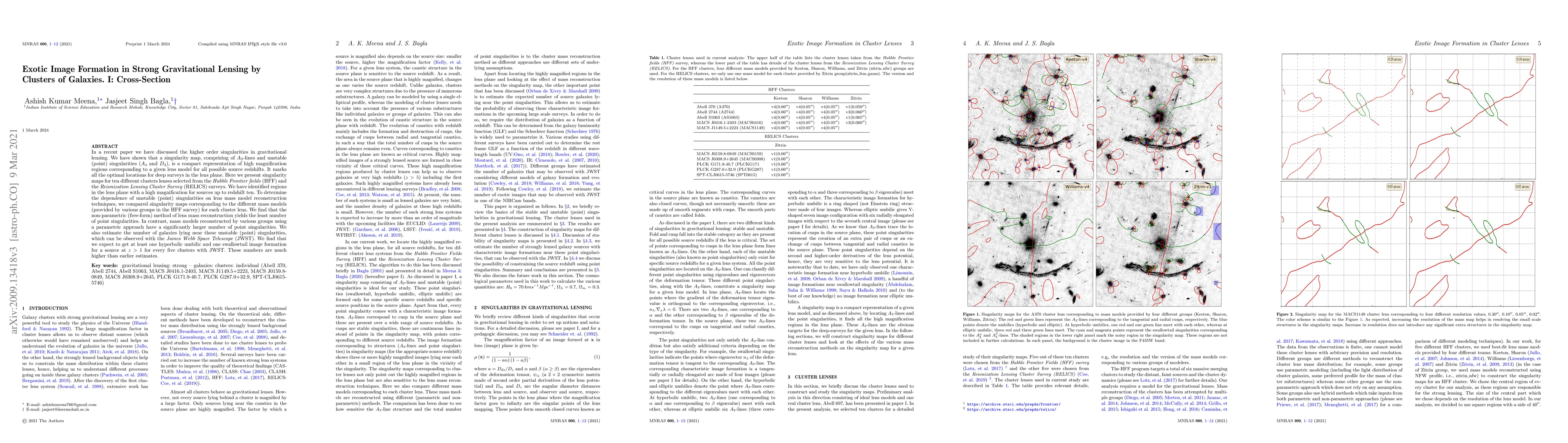 This paper presents singularity maps for ten clusters of galaxies, identifying high magnification regions using different lens mass reconstruction techniques. It finds that non-parametric methods yield fewer point singularities compared to parametric approaches, and estimates that the James Webb Space Telescope will observe more exotic image formations than previously anticipated.