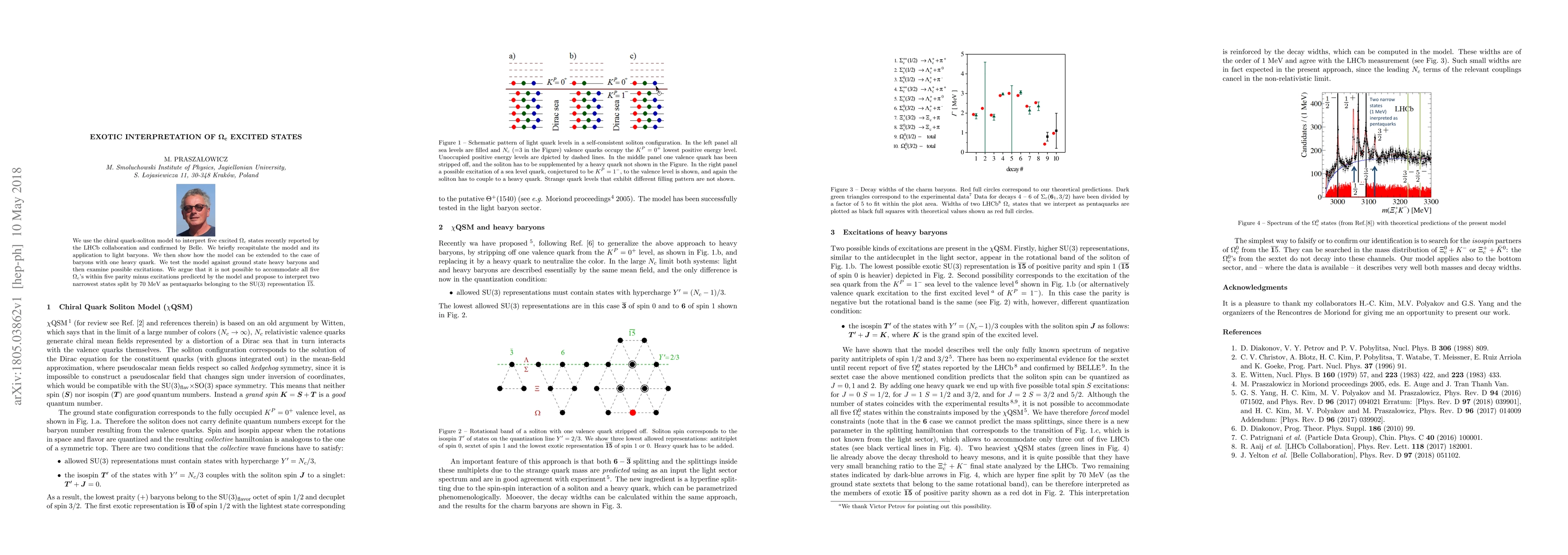 We use the chiral quark-soliton model to interpret five excited $\Omega_c$ states recently reported by the LHCb collaboration and confirmed by Belle. We briefly recapitulate the model and its application to light baryons. We then show how the model can be extended to the case of baryons with one heavy quark. We test the model against ground state heavy baryons and then examine possible excitations. We argue that it is not possible to accommodate all five $\Omega_c$'s within five parity minus excitations predicetd by the model and propose to interpret two narrowest states split by 70 MeV as pentaquarks belonging to the SU(3) representation $\overline{15}$.