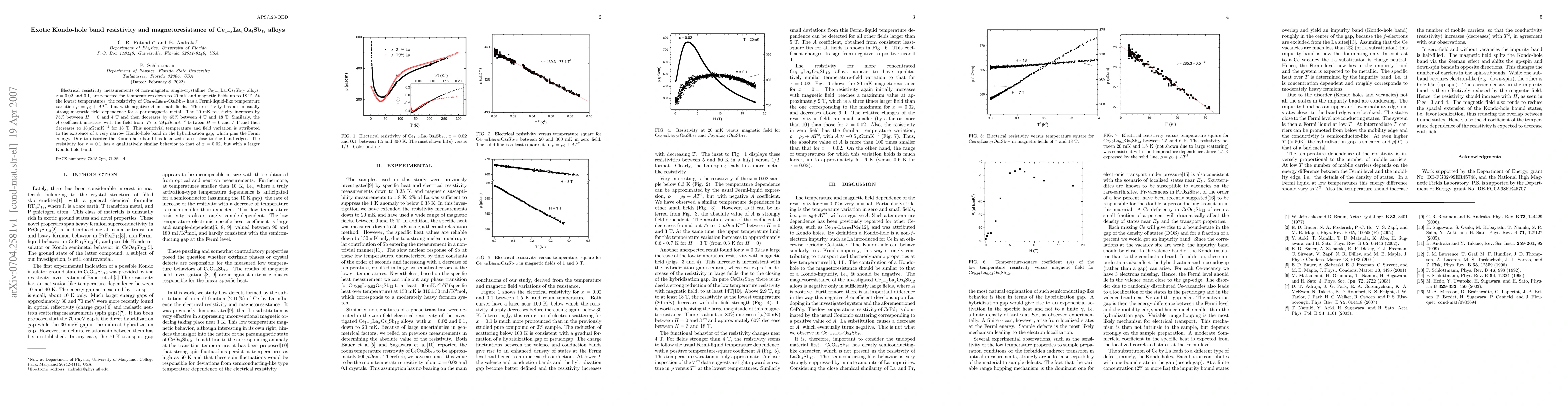 The research paper investigates the resistivity and magnetoresistance of a specific alloy series, revealing unusual temperature and field dependence due to a narrow Kondo-hole band pinning the Fermi energy, and its implications for our understanding of hybridization gaps in magnetic metals.