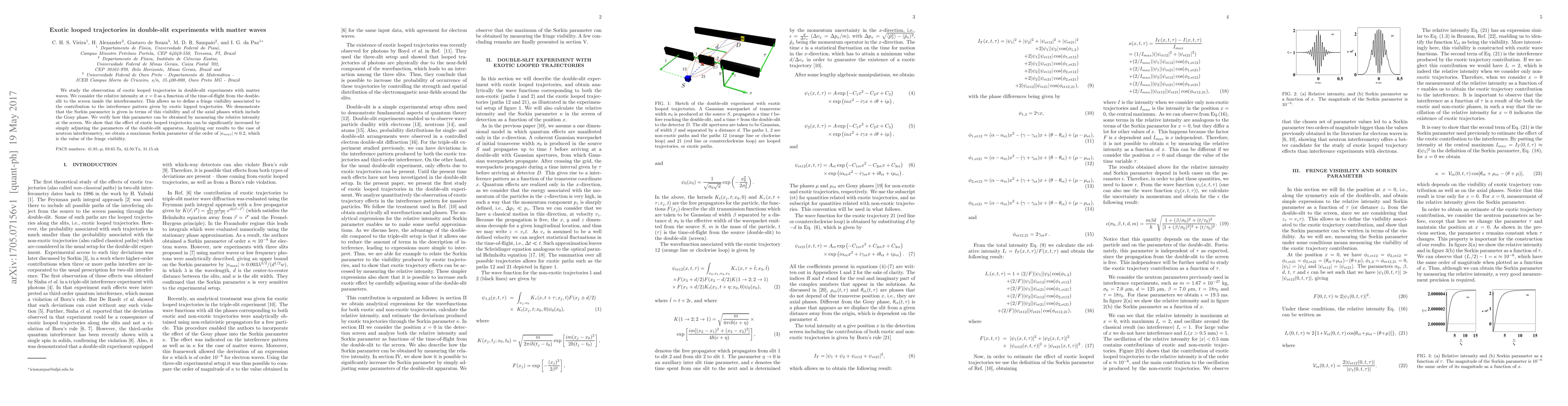 This paper investigates the presence of exotic looped trajectories in double-slit experiments with matter waves, demonstrating their contribution to the interference pattern. The study finds that the Sorkin parameter, which relates to these trajectories, can be measured by observing relative intensity at the screen, and can be enhanced by adjusting experimental parameters.
