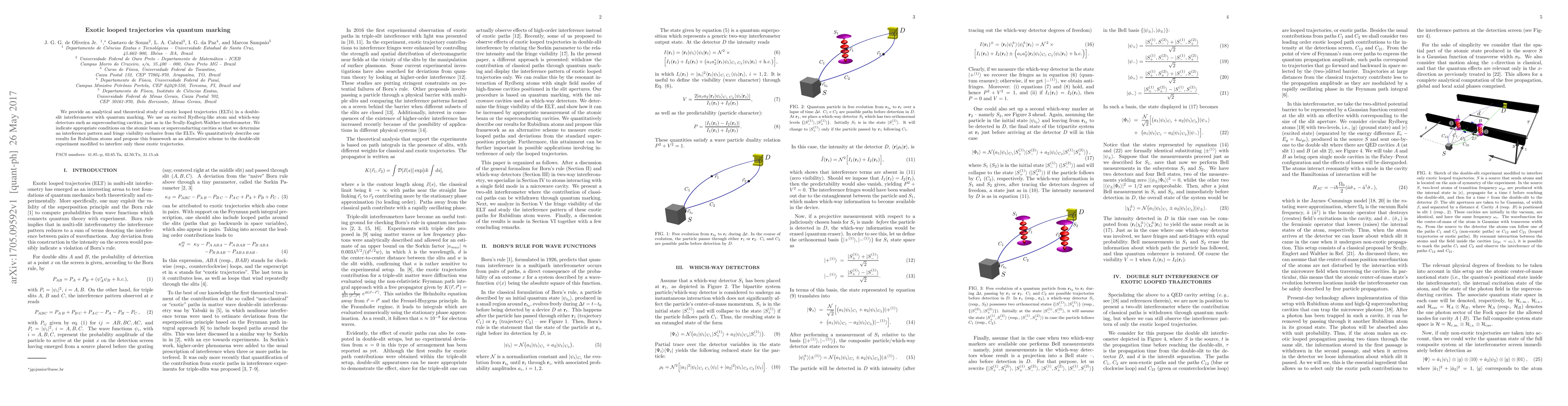We provide an analytical and theoretical study of exotic looped trajectories (ELTs) in a double-slit interferometer with quantum marking. We use an excited Rydberg-like atom and which-way detectors such as superconducting cavities, just as in the Scully-Englert-Walther interferometer. We indicate appropriate conditions on the atomic beam or superconducting cavities so that we determine an interference pattern and fringe visibility exclusive from the ELTs. We quantitatively describe our results for Rubidium atoms and propose this framework as an alternative scheme to the double-slit experiment modified to interfere only these exotic trajectories.