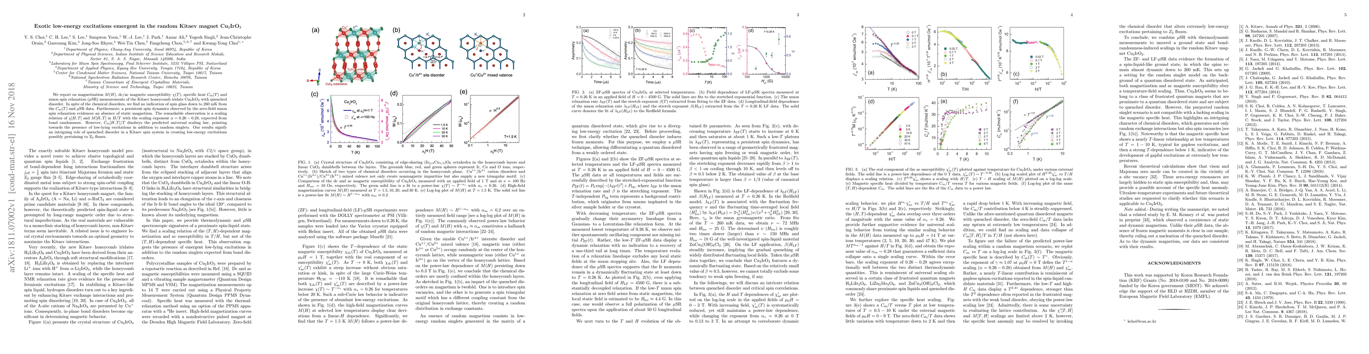 We report on magnetization $M(H)$, dc/ac magnetic susceptibility $\chi(T)$, specific heat $C_{\mathrm{m}}(T)$ and muon spin relaxation ($\mu$SR) measurements of the Kitaev honeycomb iridate Cu$_2$IrO$_2$ with quenched disorder. In spite of the chemical disorders, we find no indication of spin glass down to 260~mK from the $C_{\mathrm{m}}(T)$ and $\mu$SR data. Furthermore, a persistent spin dynamics observed by the zero-field muon spin relaxation evidences an absence of static magnetism. The remarkable observation is a scaling relation of $\chi[H,T]$ and $M[H,T]$ in $H/T$ with the scaling exponent $\alpha=0.26-0.28$, expected from bond randomness. However, $C_{\mathrm{m}}[H,T]/T$ disobeys the predicted universal scaling law, pointing towards the presence of low-lying excitations in addition to random singlets. Our results signify an intriguing role of quenched disorder in a Kitaev spin system in creating low-energy excitations possibly pertaining to Z$_2$ fluxes.
