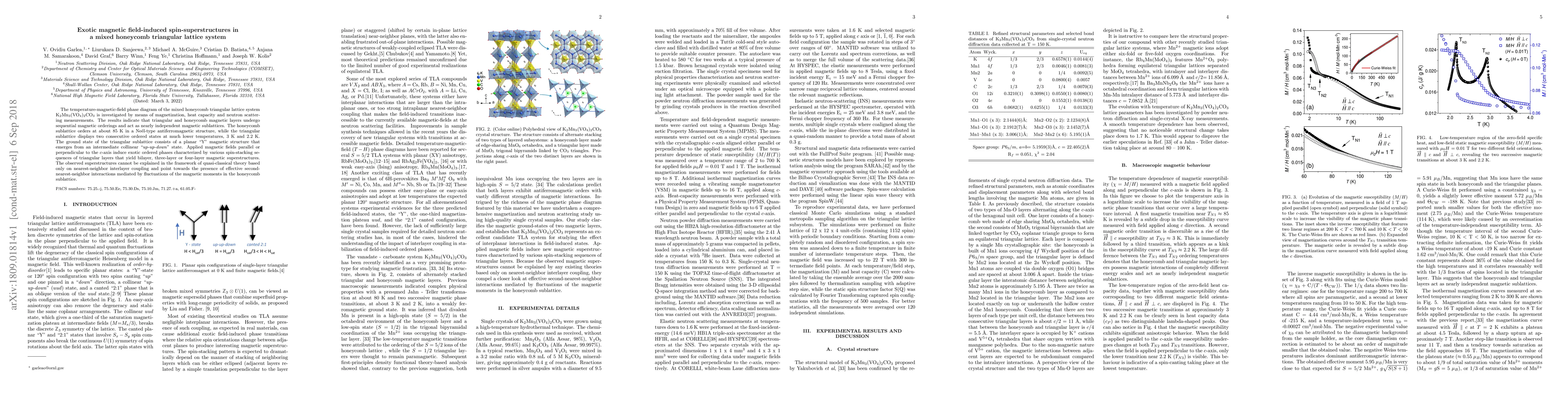 Researchers discovered exotic magnetic field-induced spin superstructures in a mixed honeycomb triangular lattice system, which cannot be explained by classical theory and suggest the presence of effective second-nearest neighbor interactions.
