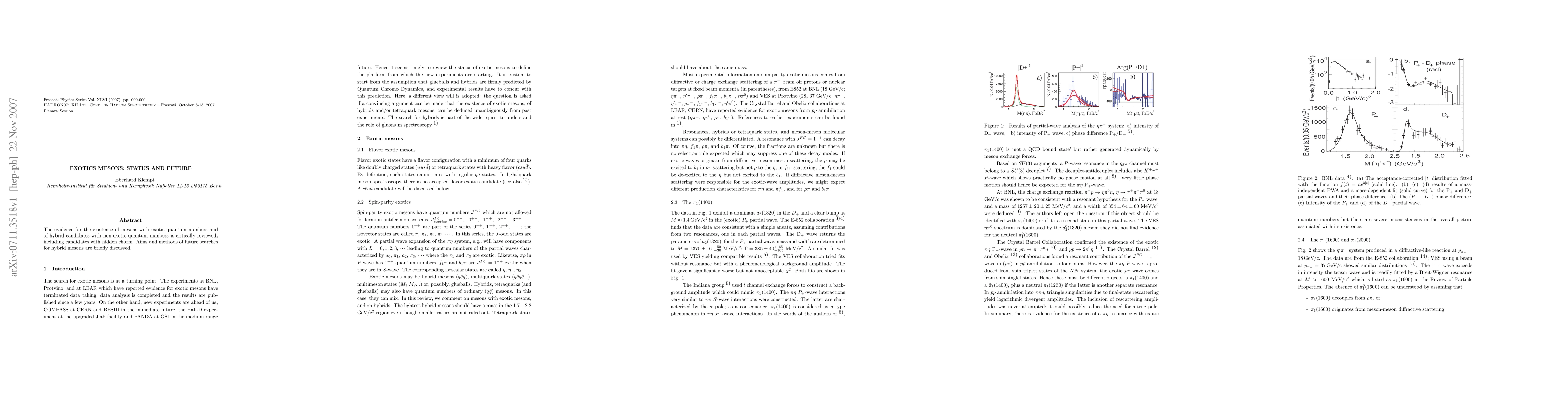 Summary: This paper reviews the current evidence for exotic mesons with unusual quantum numbers and hybrid candidates, focusing on hidden charm mesons, and outlines future research directions and methodologies for discovering hybrid mesons.