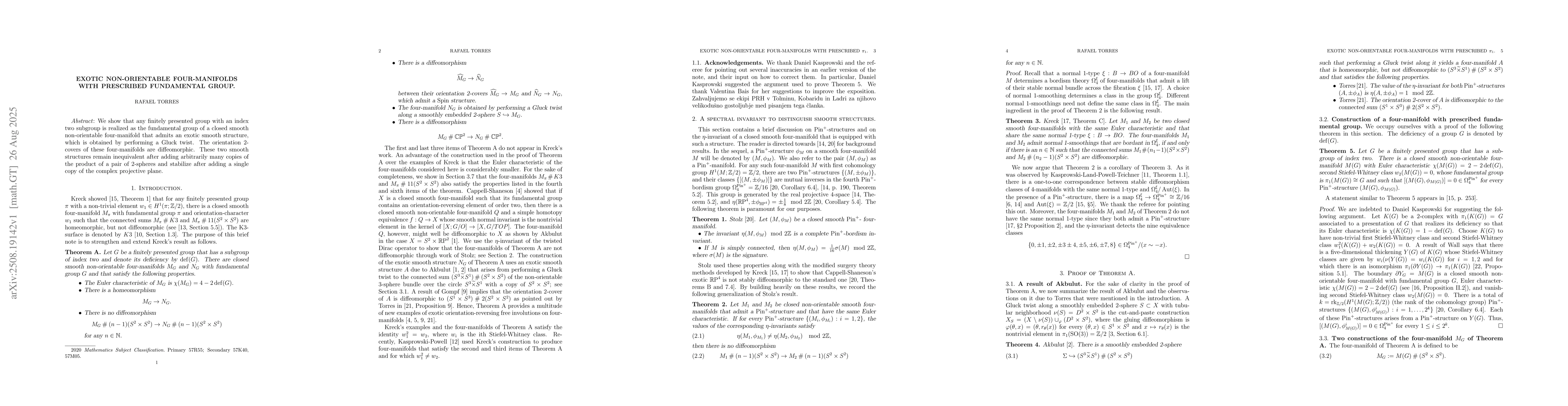 We show that any finitely presented group with an index two subgroup is realized as the fundamental group of a closed smooth non-orientable four-manifold that admits an exotic smooth structure, which is obtained by performing a Gluck twist. The orientation 2-covers of these four-manifolds are diffeomorphic. These two smooth structures remain inequivalent after adding arbitrarily many copies of the product of a pair of 2-spheres and stabilize after adding a single copy of the complex projective plane.