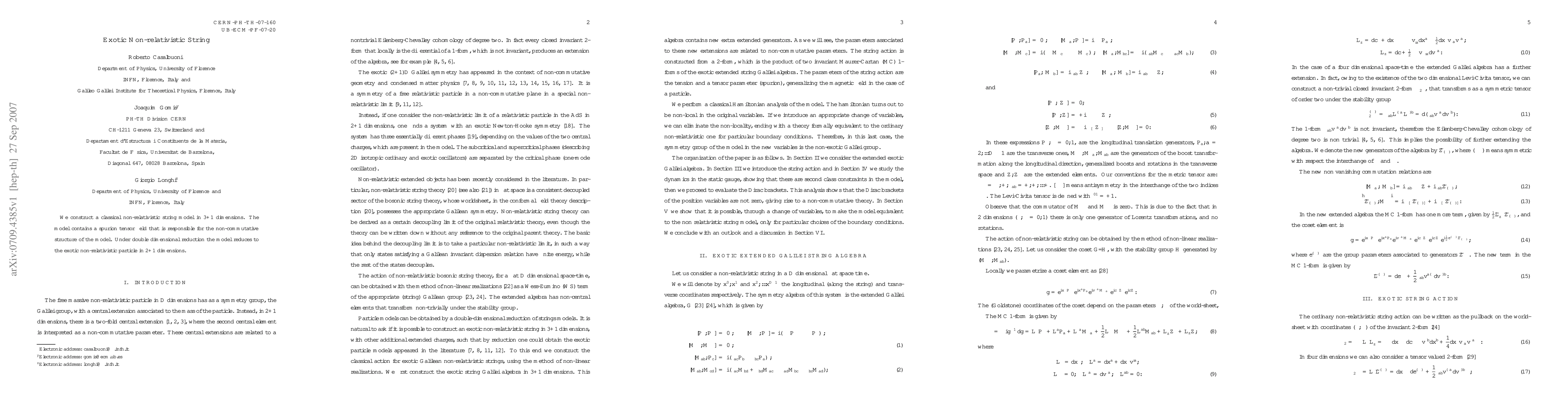 We construct a classical non-relativistic string model in 3+1 dimensions. The model contains a spurion tensor field that is responsible for the non-commutative structure of the model. Under double dimensional reduction the model reduces to the exotic non-relativistic particle in 2+1 dimensions.