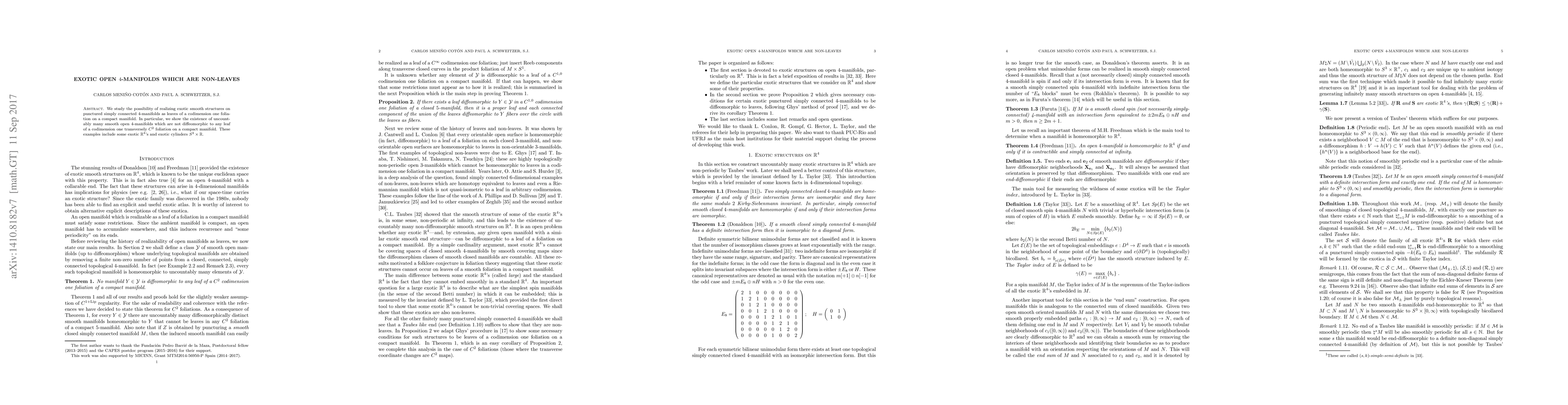 This paper explores exotic smooth structures on punctured simply connected 4-manifolds, demonstrating the existence of uncountably many such manifolds that cannot be leaves of codimension one foliations on compact manifolds, including examples of exotic ${\mathbb R}^4$ and cylinders $S^3\times{\mathbb R}$.