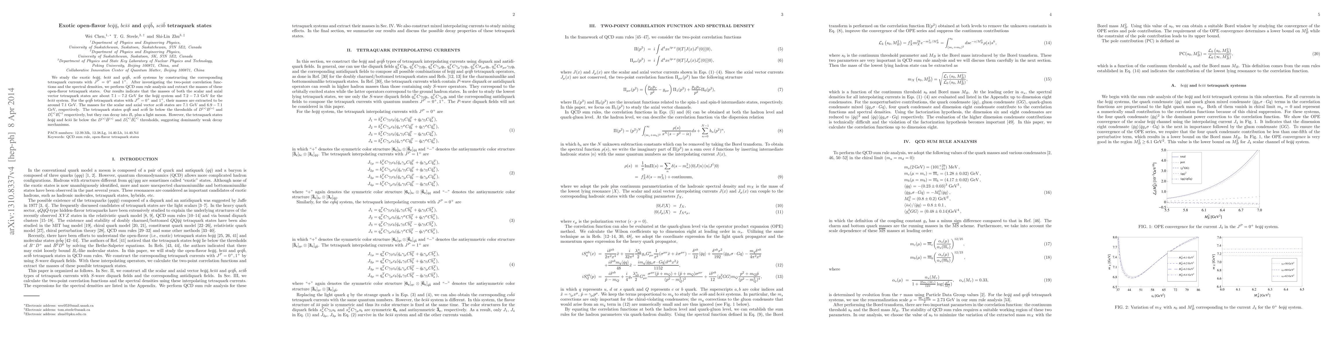 This paper investigates exotic open-flavor tetraquark states using QCD sum rules, finding masses around $7.1-7.3$ GeV for various configurations, and suggests decay mechanisms for these states based on their positions relative to known thresholds.