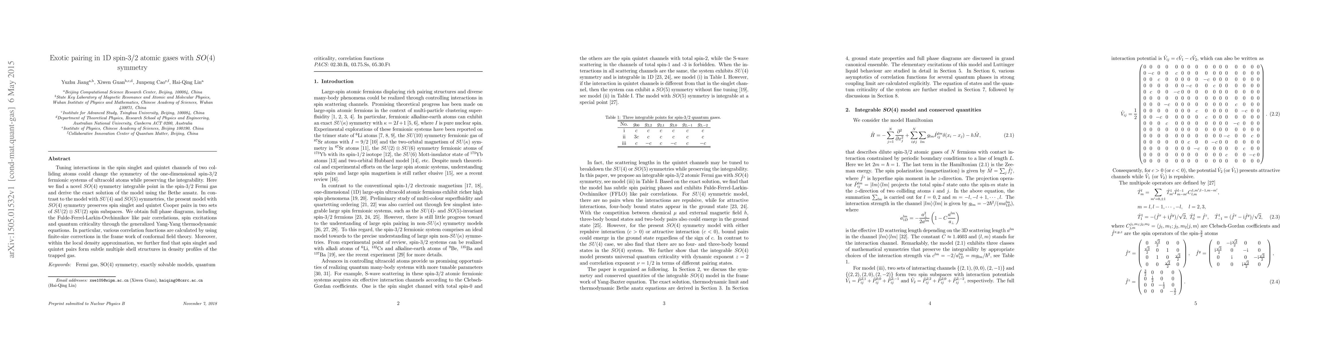Researchers discovered a novel $SO(4)$ symmetry integrable point in ultracold atoms, preserving spin singlet and quintet Cooper pairs with exact solution using the Bethe ansatz.