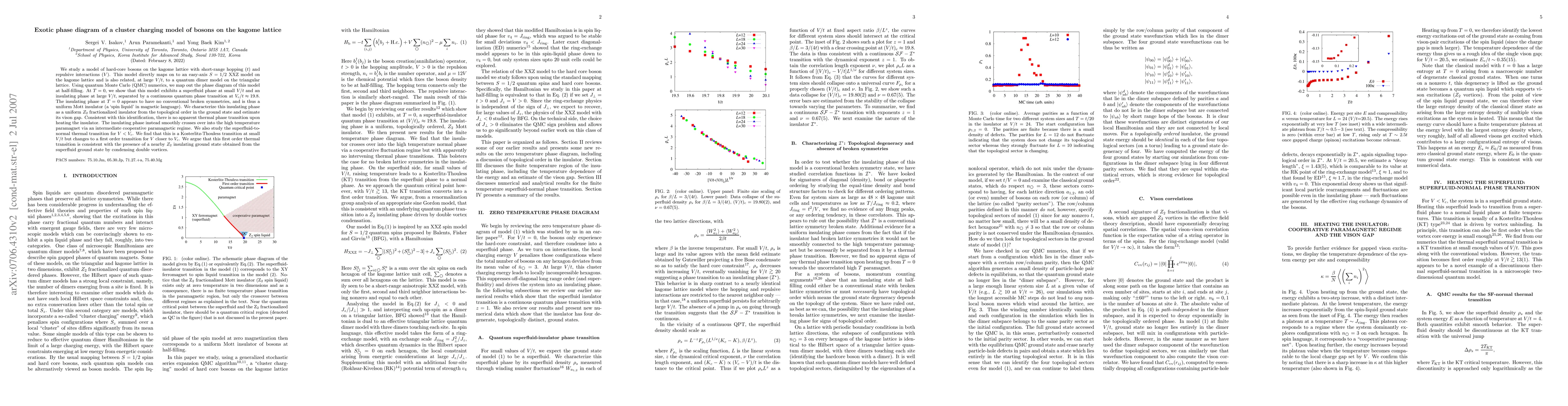 We study a model of hard-core bosons on the kagome lattice with short-range hopping ($t$) and repulsive interactions ($V$). This model directly maps on to an easy-axis $S=1/2$ XXZ model on the kagome lattice and is also related, at large $V/t$, to a quantum dimer model on the triangular lattice. Using quantum Monte Carlo (QMC) numerics, we map out the phase diagram of this model at half-filling. At T=0, we show that this model exhibits a superfluid phase at small $V/t$ and an insulating phase at large $V/t$, separated by a continuous quantum phase transition at $V_c/t \approx 19.8$. The insulating phase at T=0 appears to have no conventional broken symmetries, and is thus a uniform Mott insulator (a `spin liquid' in magnetic language). We characterize this insulating phase as a uniform $Z_2$ fractionalized insulator from the topological order in the ground state and estimate its vison gap. Consistent with this identification, there is no apparent thermal phase transition upon heating the insulator. The insulating phase instead smoothly crosses over into the high temperature paramagnet via an intermediate cooperative paramagnetic regime. We also study the superfluid-to-normal thermal transition for $V < V_c$. We find that this is a Kosterlitz-Thouless transition at small $V/t$ but changes to a first order transition for $V$ closer to $V_c$. We argue that this first order thermal transition is consistent with the presence of a nearby $Z_2$ insulating ground state obtained from the superfluid ground state by condensing double vortices.