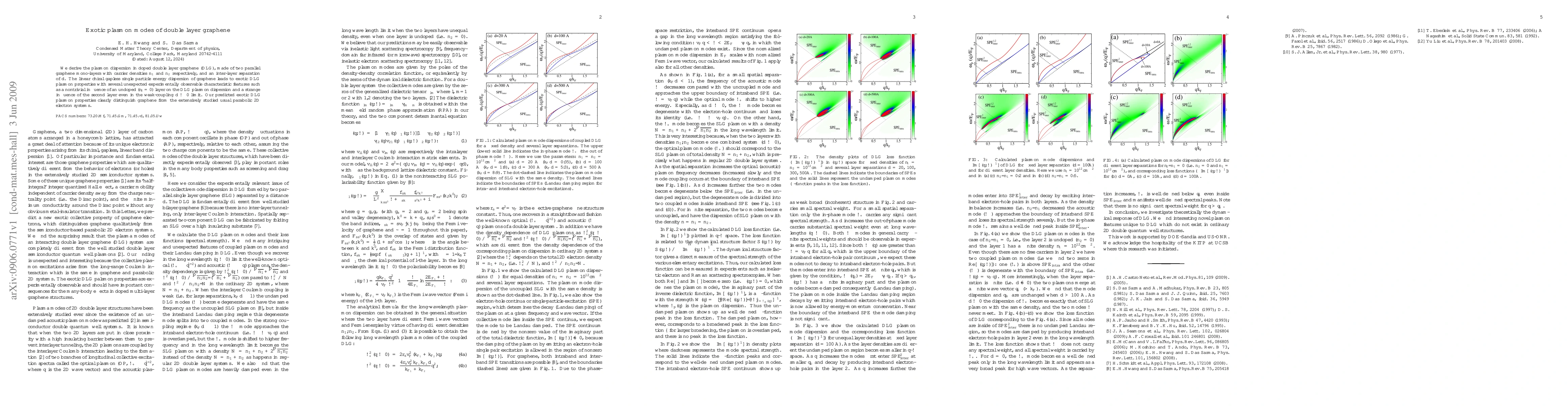 This work distinguishes itself by focusing on the exotic plasmon modes in double layer graphene, revealing unexpected features due to its unique electronic structure, which differentiate it from conventional 2D electron systems.
