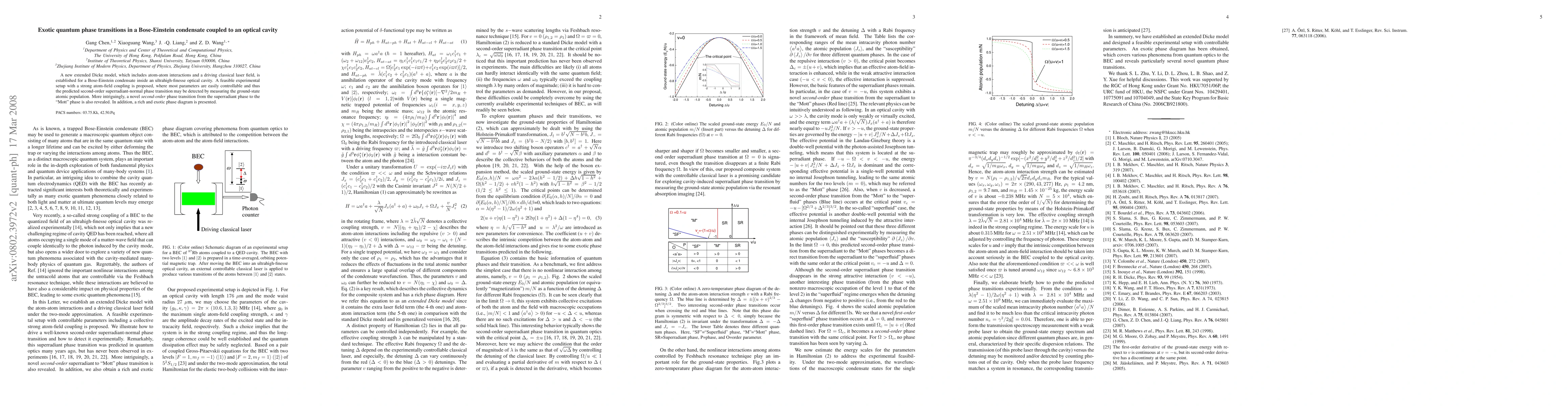 This paper proposes an extended Dicke model for a Bose-Einstein condensate in an optical cavity, predicting a second-order superradiant-normal phase transition and a novel second-order transition to a "Mott" phase, with a feasible experimental setup for detection. The study also presents a rich and exotic phase diagram.