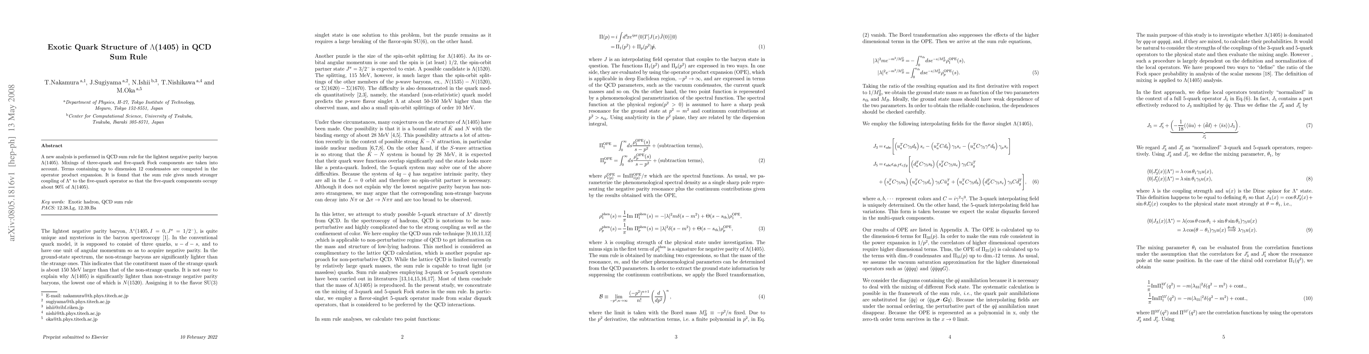 This research investigates the exotic quark structure of the baryon Lambda(1405) using QCD sum rules, revealing that five-quark components dominate, accounting for approximately 90% of its structure, due to stronger coupling compared to three-quark configurations.