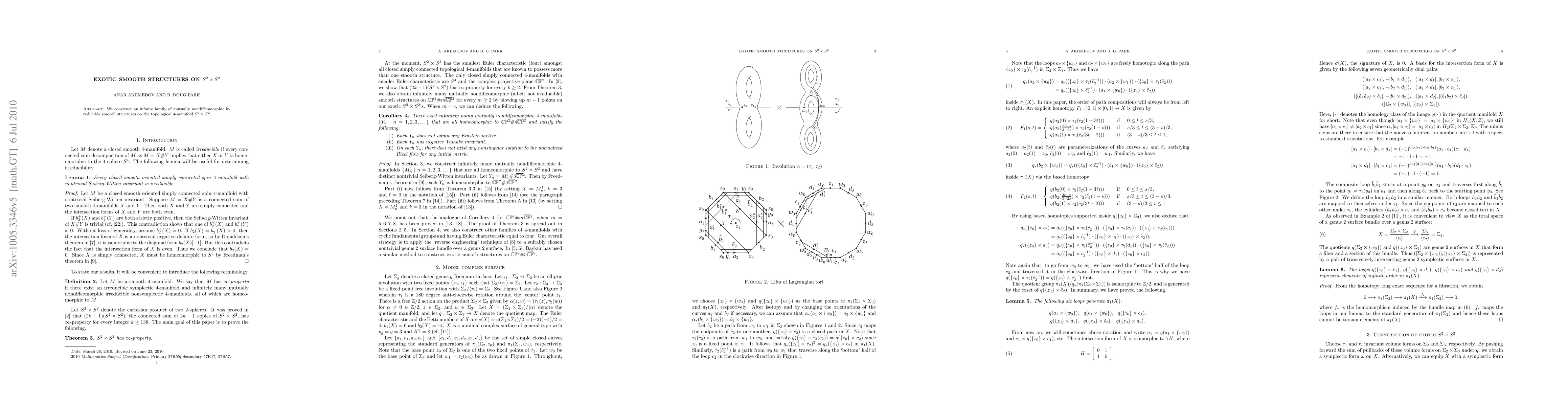 Summary: This paper constructs an infinite family of distinct irreducible smooth structures on the 4-manifold $S^2 \times S^2$, demonstrating that these smooth structures are mutually non-diffeomorphic.