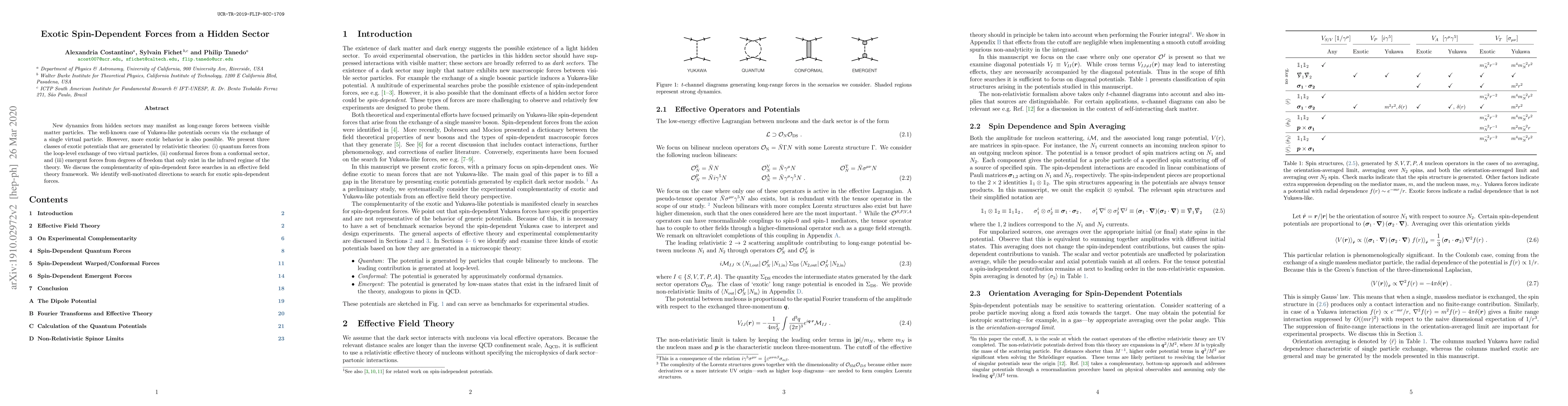 This paper explores new long-range spin-dependent forces potentially arising from hidden sectors, presenting three exotic classes of potentials: quantum forces from two-particle loops, conformal forces from a conformal sector, and emergent forces from infrared degrees of freedom. It emphasizes the complementary nature of these force searches within an effective field theory framework.