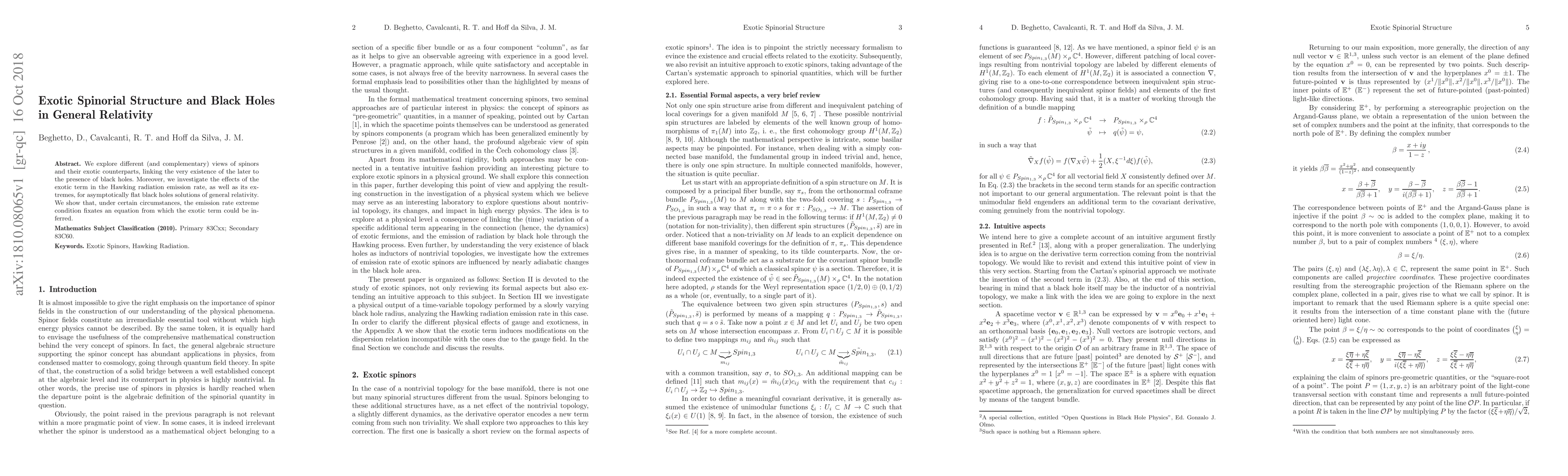 We explore different (and complementary) views of spinors and their exotic counterparts, linking the very existence of the later to the presence of black holes. Moreover, we investigate the effects of the exotic term in the Hawking radiation emission rate, as well as its extremes, for asymptotically flat black holes solutions of general relativity. We show that, under certain circumstances, the emission rate extreme condition fixates an equation from which the exotic term could be inferred.