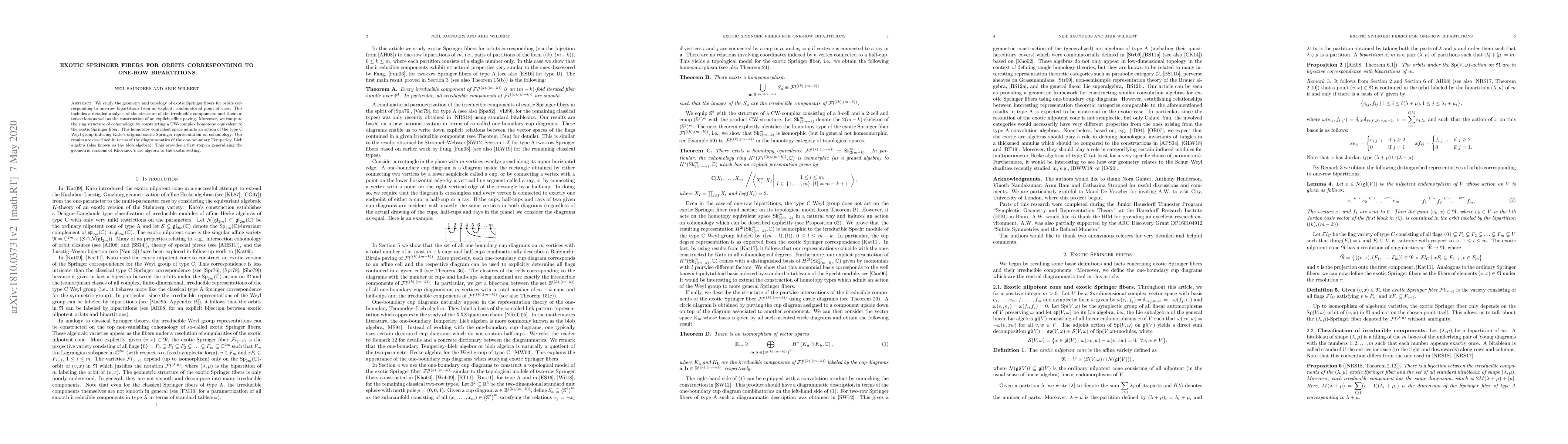 This paper explores the geometry and topology of exotic Springer fibers linked to one-row bipartitions, detailing the structure of their irreducible components and intersections. It constructs a CW-complex homotopy equivalent to these fibers, revealing the ring structure of their cohomology and employing the diagrammatics of the one-boundary Temperley-Lieb algebra.
