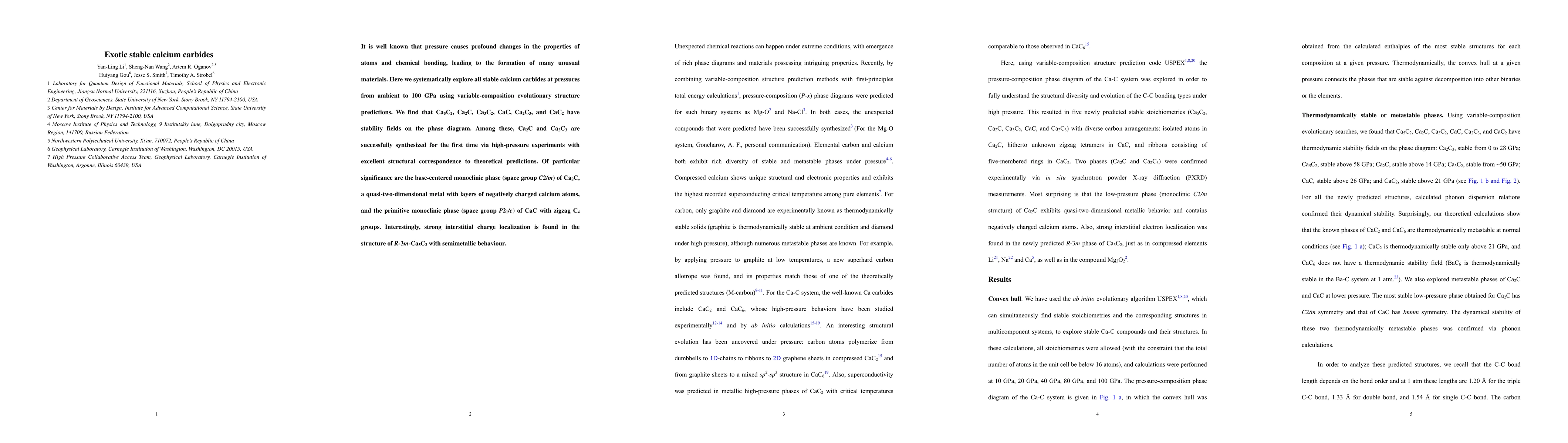 Researchers discovered six exotic calcium carbides with stability fields at high pressures, including Ca2C and Ca2C3, which were successfully synthesized for the first time via high-pressure experiments.