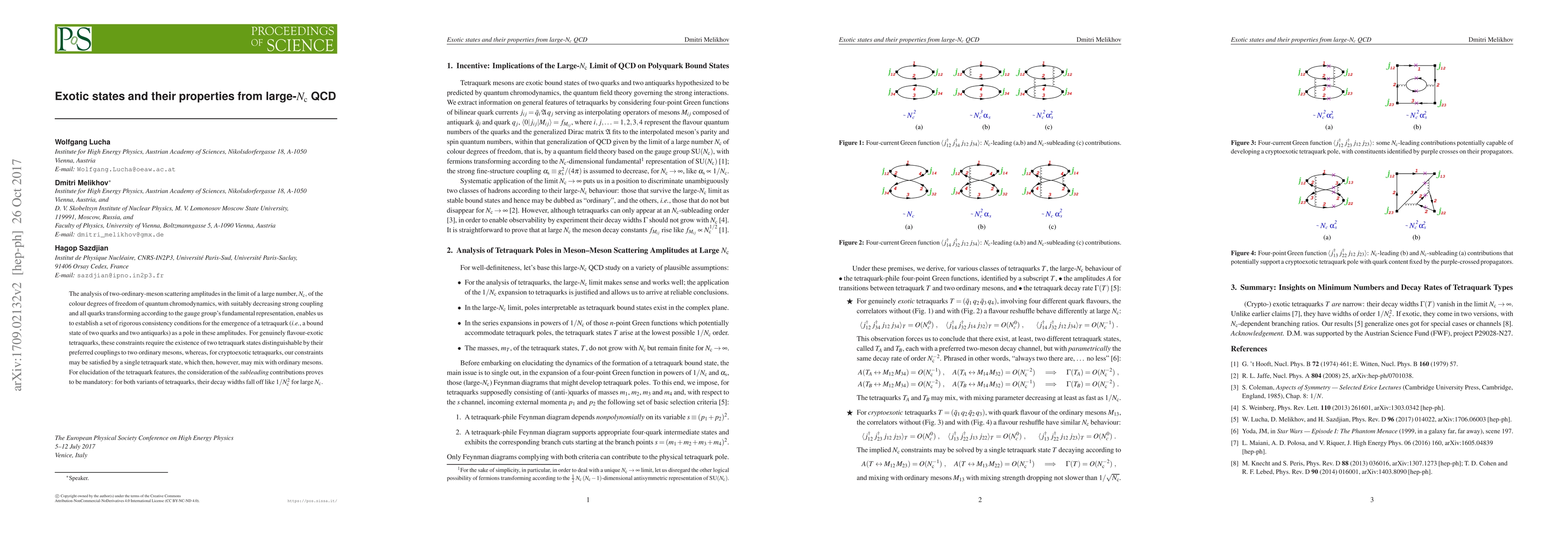 The analysis of two-ordinary-meson scattering amplitudes in the limit of a large number $N_{\rm c}$ of the colour degrees of freedom of quantum chromodynamics, with suitably decreasing strong coupling and all quarks transforming according to the gauge group's fundamental representation, enables us to establish a set of rigorous consistency conditions for the emergence of a tetraquark (i.e., a bound state of two quarks and two antiquarks) as a pole in these amplitudes. For genuinely flavour-exotic tetraquarks, these constraints require the existence of two tetraquark states distinguishable by their preferred couplings to two ordinary mesons, whereas, for cryptoexotic tetraquarks, our constraints may be satisfied by a single tetraquark state, which then, however, may mix with ordinary mesons. For elucidation of the tetraquark features, the consideration of the subleading contributions proves to be mandatory: for both variants of tetraquarks, their decay widths fall off like $1/N_{\rm c}^2$ for large $N_{\rm c}.$