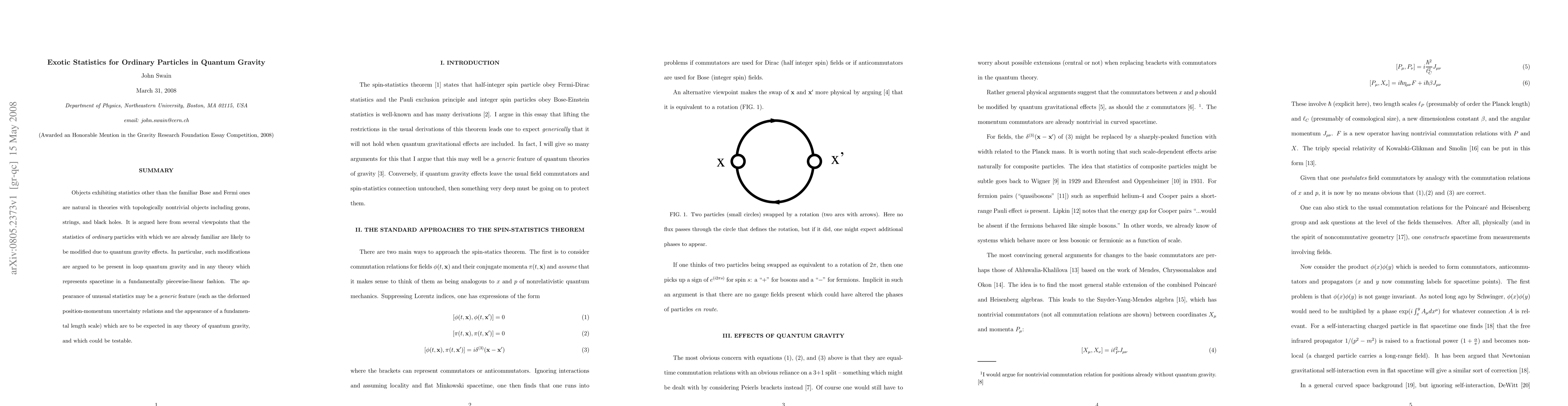 This paper explores how quantum gravity effects could modify the statistics of ordinary particles, suggesting that unusual statistics might be a generic feature in quantum gravity theories. It focuses on loop quantum gravity and piecewise-linear spacetime theories, proposing that these modifications could be testable.
