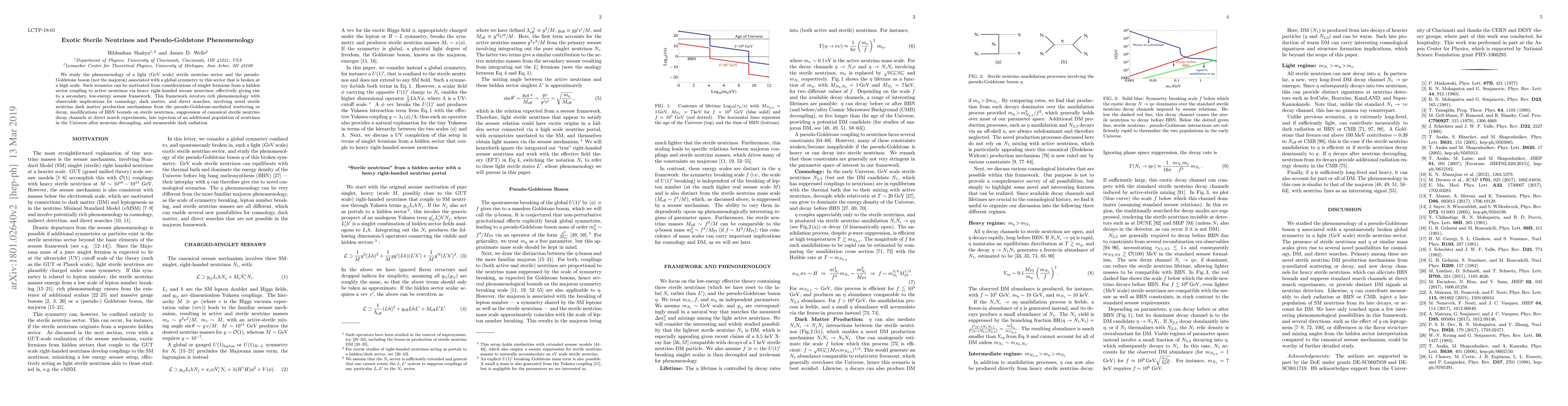 This paper explores the phenomenology of light sterile neutrinos at the GeV scale and their associated pseudo-Goldstone bosons, arising from a broken global symmetry. It discusses potential implications for cosmology, dark matter, and direct searches, including novel production mechanisms and modifications to Big Bang Nucleosynthesis bounds.