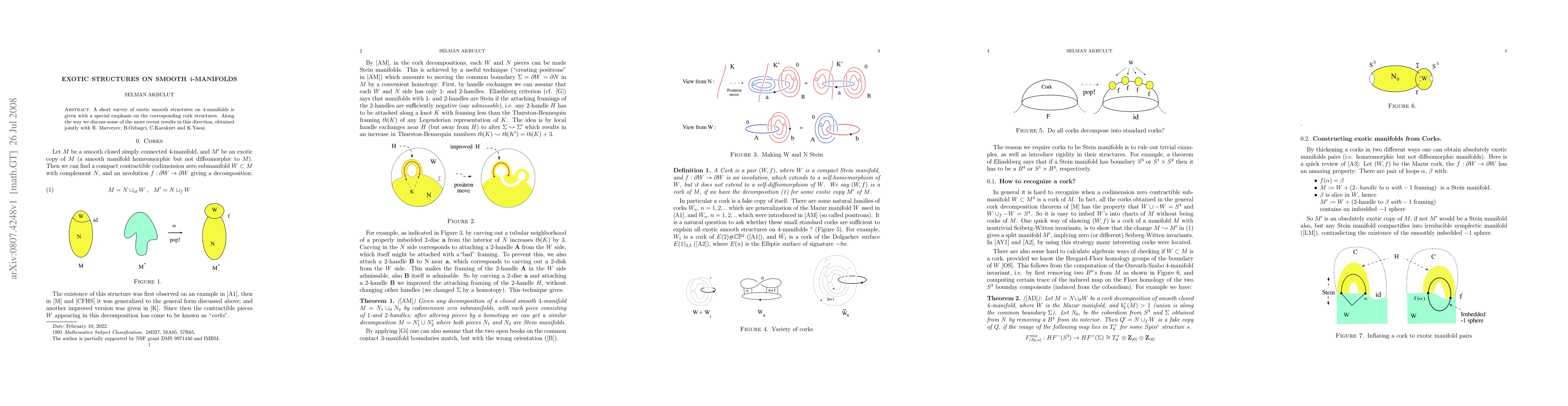 Summary: This paper surveys exotic smooth structures on 4-manifolds, focusing on cork structures, and discusses recent collaborative findings with R. Matveyev, B. Ozbagci, C. Karakurt, and K. Yasui.