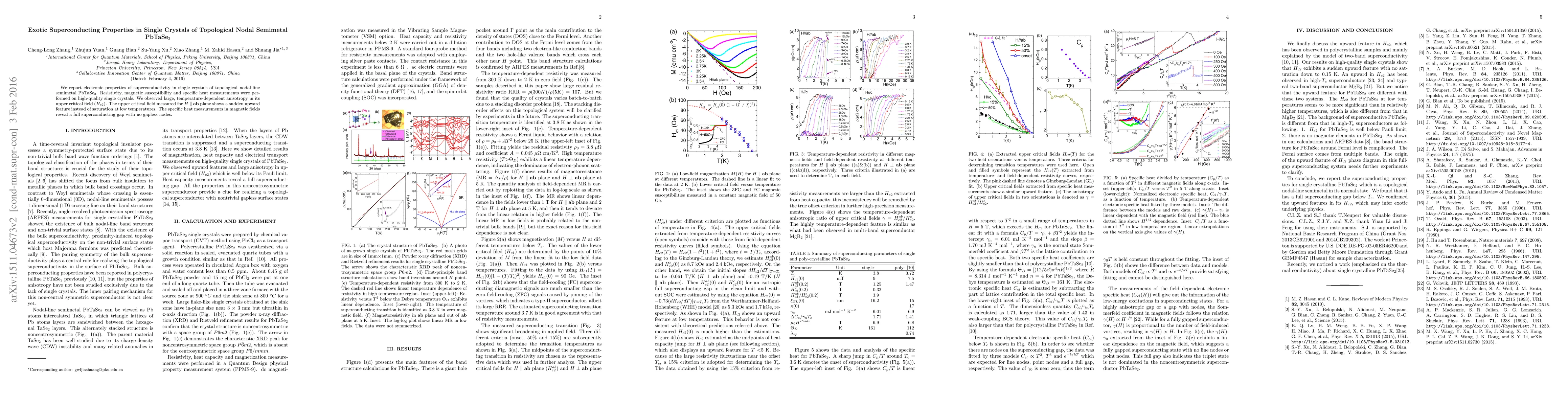 This paper reports the superconducting properties of PbTaSe$_2$, a topological nodal-line semimetal, revealing an unconventional superconducting behavior characterized by anisotropic upper critical fields and a full superconducting gap without gapless nodes, hinting at exotic topological superconductivity.