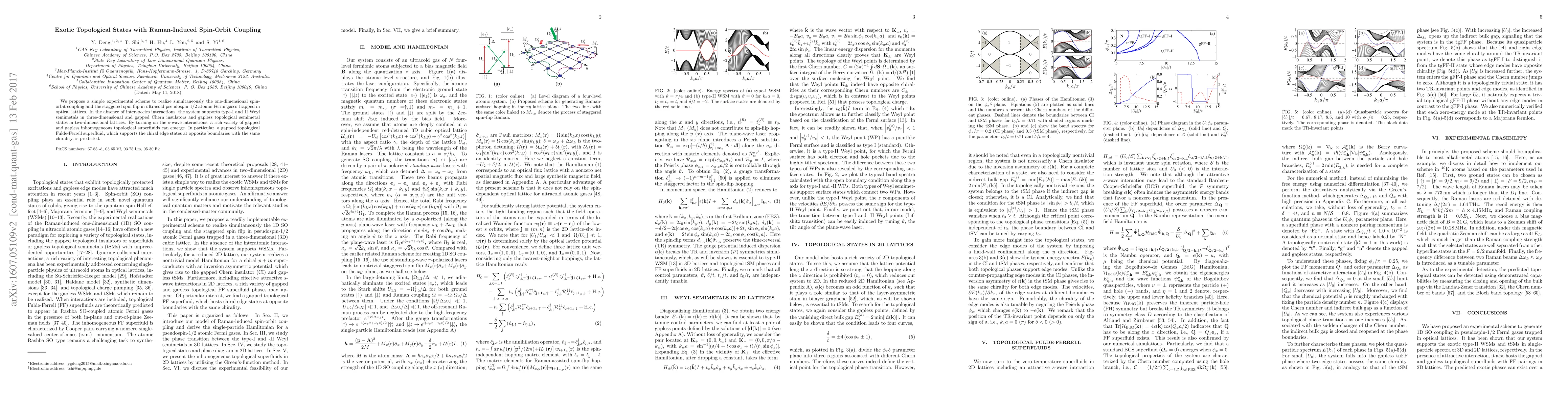 This paper proposes an experimental setup for inducing spin-orbit coupling and staggered spin-flip in ultracold Fermi gases, leading to exotic topological states like Chern insulators and topological semimetals. With $s$-wave interactions, it predicts diverse topological superfluids, including a gapped Fulde-Ferrell superfluid with chiral edge states.