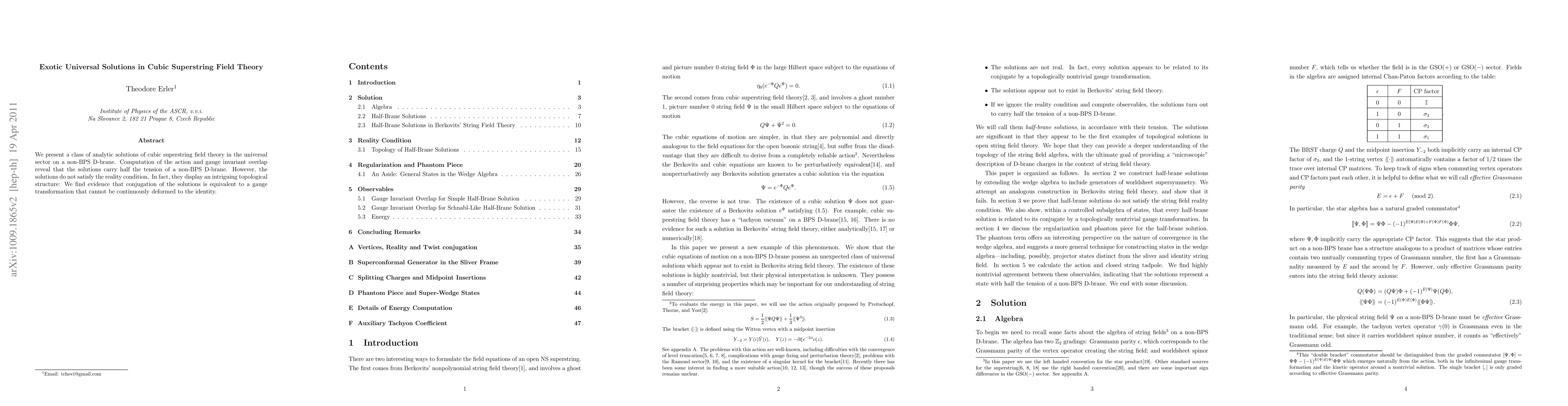 This paper introduces exotic analytic solutions in cubic superstring field theory on a non-BPS D-brane, which carry half the tension but fail the reality condition. The solutions exhibit a unique topological structure where conjugation corresponds to a non-trivial gauge transformation.