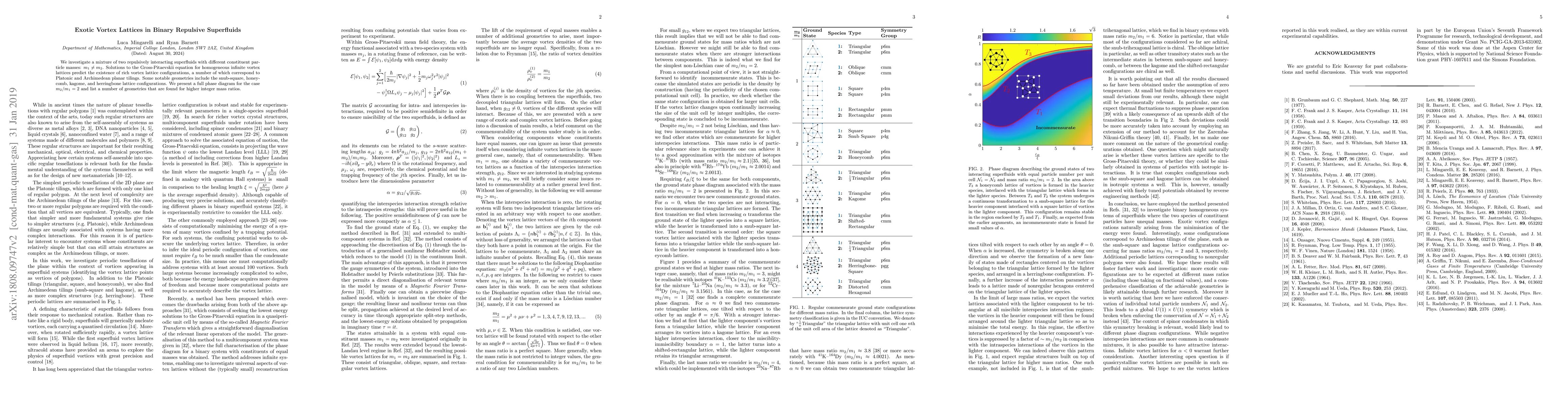 We investigate a mixture of two repulsively interacting superfluids with different constituent particle masses: $m_1\ne m_2$. Solutions to the Gross-Pitaevskii equation for homogeneous infinite vortex lattices predict the existence of rich vortex lattice configurations, a number of which correspond to Platonic and Archimedean planar tilings. Some notable geometries include the snub-square, honeycomb, kagome, and herringbone lattice configurations. We present a full phase diagram for the case $m_2/m_1 = 2$ and list a number of geometries that are found for higher integer mass ratios.