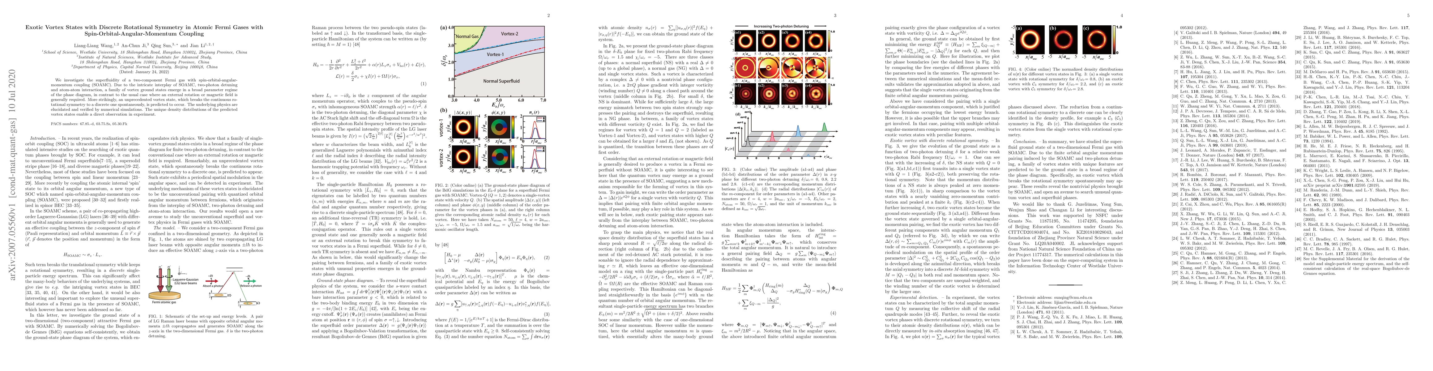 This paper explores superfluid vortex states in a two-component Fermi gas with spin-orbital-angular-momentum coupling, revealing a family of vortex ground states without the need for external rotation or magnetic fields. Notably, it predicts a unique vortex state that spontaneously breaks continuous rotational symmetry to a discrete one, supported by numerical simulations and potentially observable in experiments.