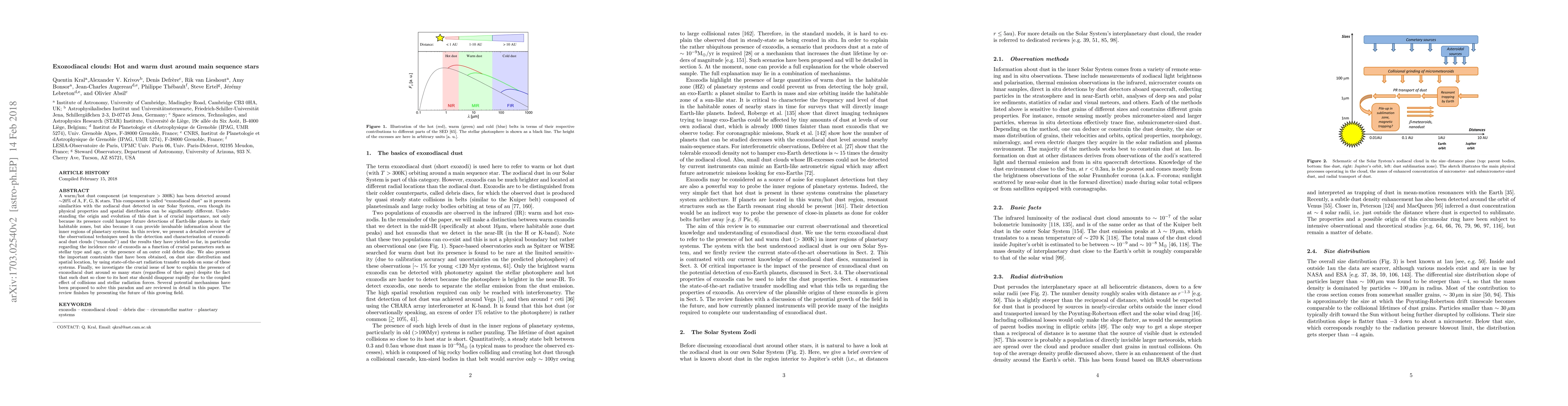 This paper reviews the detection and characterization of exozodiacal dust clouds, highlighting their similarities to the Solar System's zodiacal dust, and discusses the mechanisms behind their persistence around stars. It also explores observational techniques and their implications for understanding planetary systems.