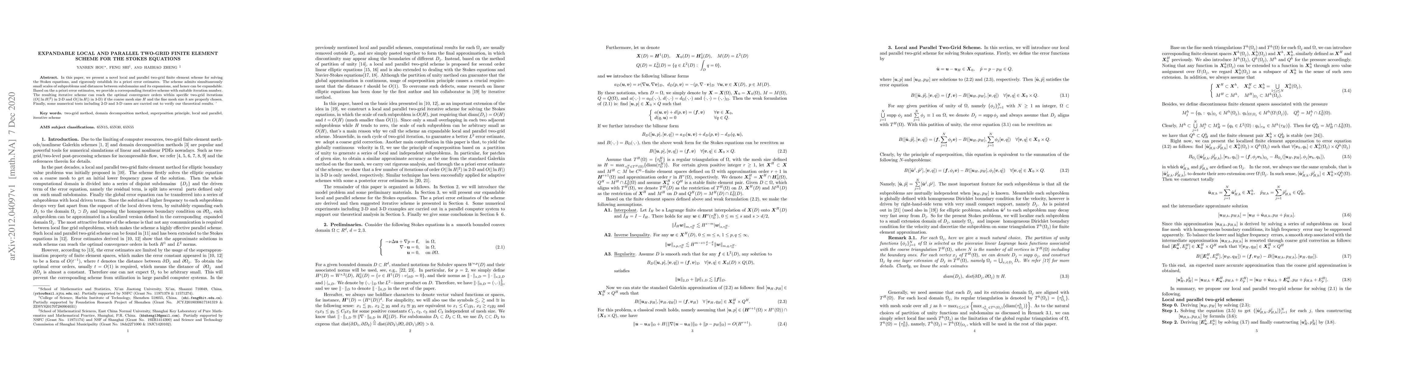 In this paper, we present a novel local and parallel two-grid finite element scheme for solving the Stokes equations, and rigorously establish its a priori error estimates. The scheme admits simultaneously small scales of subproblems and distances between subdomains and its expansions, and hence can be expandable. Based on the a priori error estimates, we provide a corresponding iterative scheme with suitable iteration number. The resulting iterative scheme can reach the optimal convergence orders within specific two-grid iterations ($O(|\ln H|^2)$ in 2-D and $O(|\ln H|)$ in 3-D) if the coarse mesh size $H$ and the fine mesh size $h$ are properly chosen. Finally, some numerical tests including 2-D and 3-D cases are carried out to verify our theoretical results.