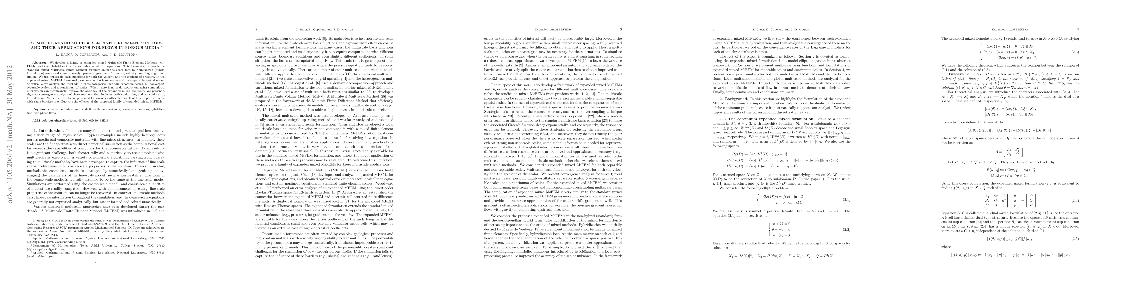 This paper develops expanded mixed Multiscale Finite Element Methods (MsFEMs) for solving second-order elliptic equations in porous media, solving four unknowns simultaneously: pressure, pressure gradient, velocity, and Lagrange multipliers. The methods are rigorously analyzed for convergence and applied to various multiscale models, demonstrating improved accuracy and efficiency in simulating flows in porous media.