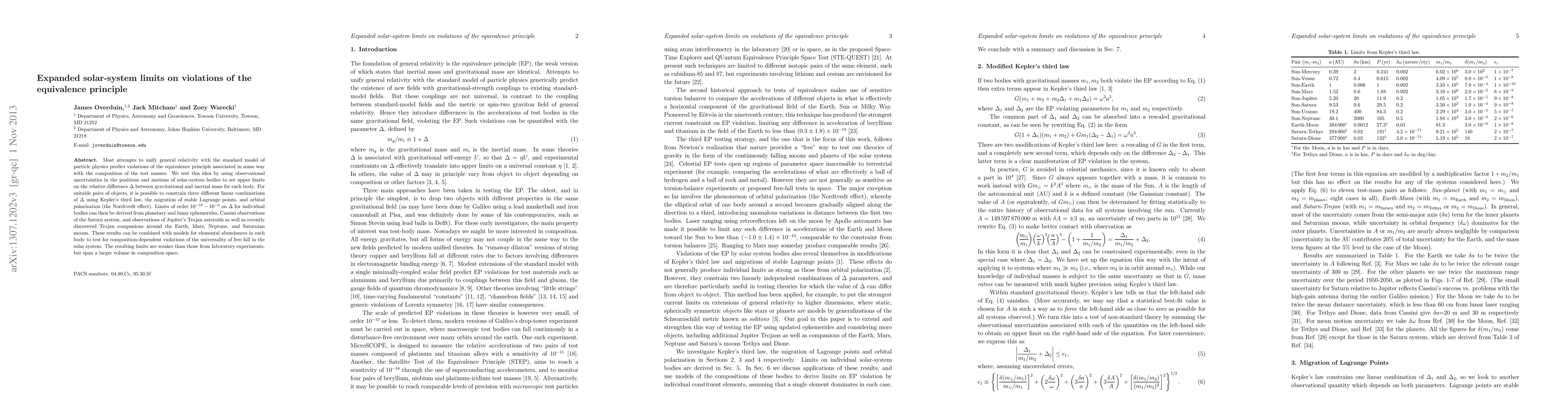 Most attempts to unify general relativity with the standard model of particle physics predict violations of the equivalence principle associated in some way with the composition of the test masses. We test this idea by using observational uncertainties in the positions and motions of solar-system bodies to set upper limits on possible differences $\Delta$ between the gravitational and inertial mass of each body. For suitable pairs of objects, it is possible to constrain three different linear combinations of $\Delta$ using Kepler's third law, the migration of stable Lagrange points, and orbital polarization (the Nordtvedt effect). Limits of order $10^{-10}-10^{-6}$ on $\Delta$ for individual bodies can then be derived from planetary and lunar ephemerides, Cassini observations of the Saturn system, and observations of Jupiter's Trojan asteroids as well as recently discovered Trojan companions around the Earth, Mars, Neptune, and Saturnian moons. These results can be combined with models for elemental abundances in each body to test for composition-dependent violations of the universality of free fall in the solar system. The resulting limits are weaker than those from laboratory experiments, but span a larger volume in composition space.