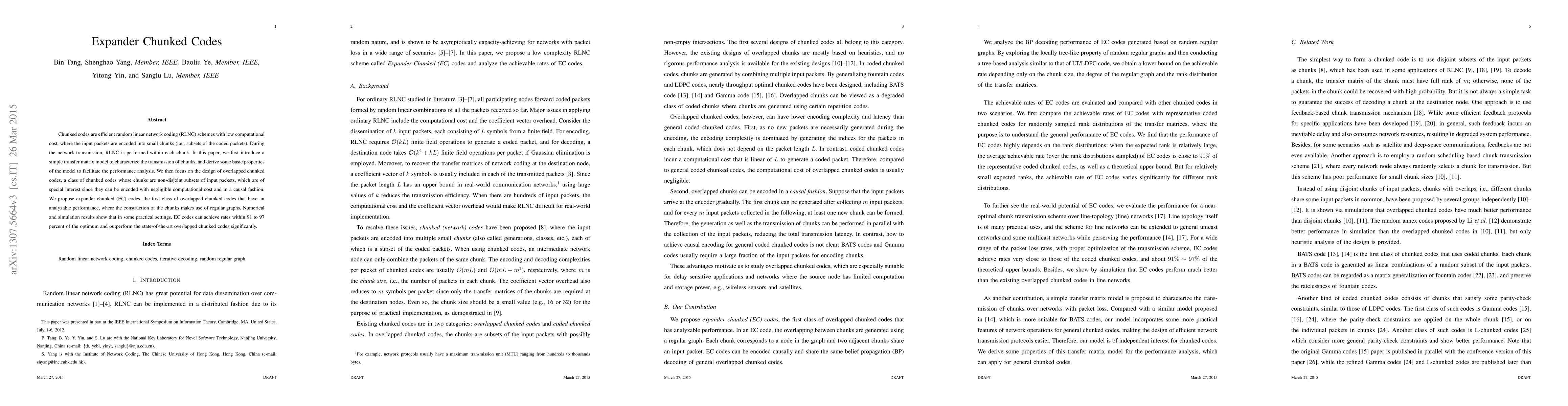 This paper introduces expander chunked (EC) codes, a novel class of overlapped chunked codes designed for efficient random linear network coding with minimal computational overhead. The authors demonstrate that EC codes achieve near-optimal performance rates and outperform existing methods in practical scenarios.