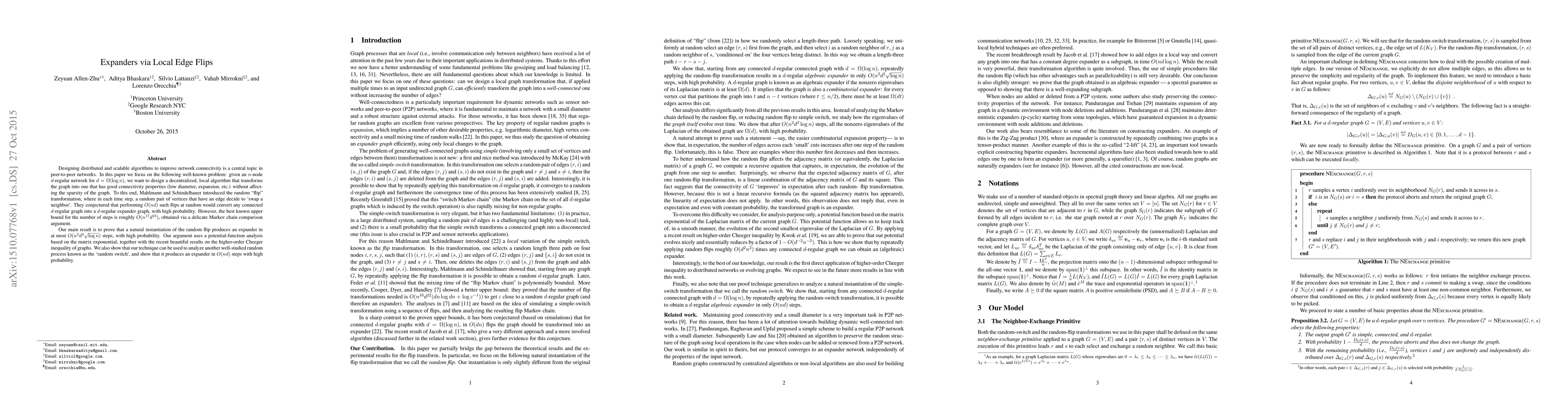 Designing distributed and scalable algorithms to improve network connectivity is a central topic in peer-to-peer networks. In this paper we focus on the following well-known problem: given an $n$-node $d$-regular network for $d=\Omega(\log n)$, we want to design a decentralized, local algorithm that transforms the graph into one that has good connectivity properties (low diameter, expansion, etc.) without affecting the sparsity of the graph. To this end, Mahlmann and Schindelhauer introduced the random "flip" transformation, where in each time step, a random pair of vertices that have an edge decide to `swap a neighbor'. They conjectured that performing $O(n d)$ such flips at random would convert any connected $d$-regular graph into a $d$-regular expander graph, with high probability. However, the best known upper bound for the number of steps is roughly $O(n^{17} d^{23})$, obtained via a delicate Markov chain comparison argument. Our main result is to prove that a natural instantiation of the random flip produces an expander in at most $O(n^2 d^2 \sqrt{\log n})$ steps, with high probability. Our argument uses a potential-function analysis based on the matrix exponential, together with the recent beautiful results on the higher-order Cheeger inequality of graphs. We also show that our technique can be used to analyze another well-studied random process known as the `random switch', and show that it produces an expander in $O(n d)$ steps with high probability.
