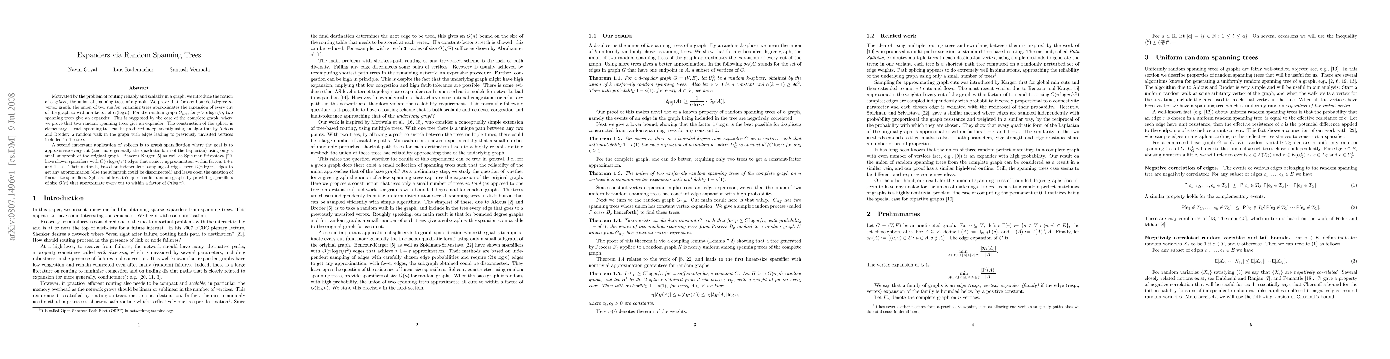 The paper introduces the notion of a splicer, the union of spanning trees of a graph, and proves that for any bounded-degree n-vertex graph, the union of two random spanning trees approximates the expansion of every cut of the graph to within a factor of O(log n). It also discusses applications of splicers in graph sparsification.